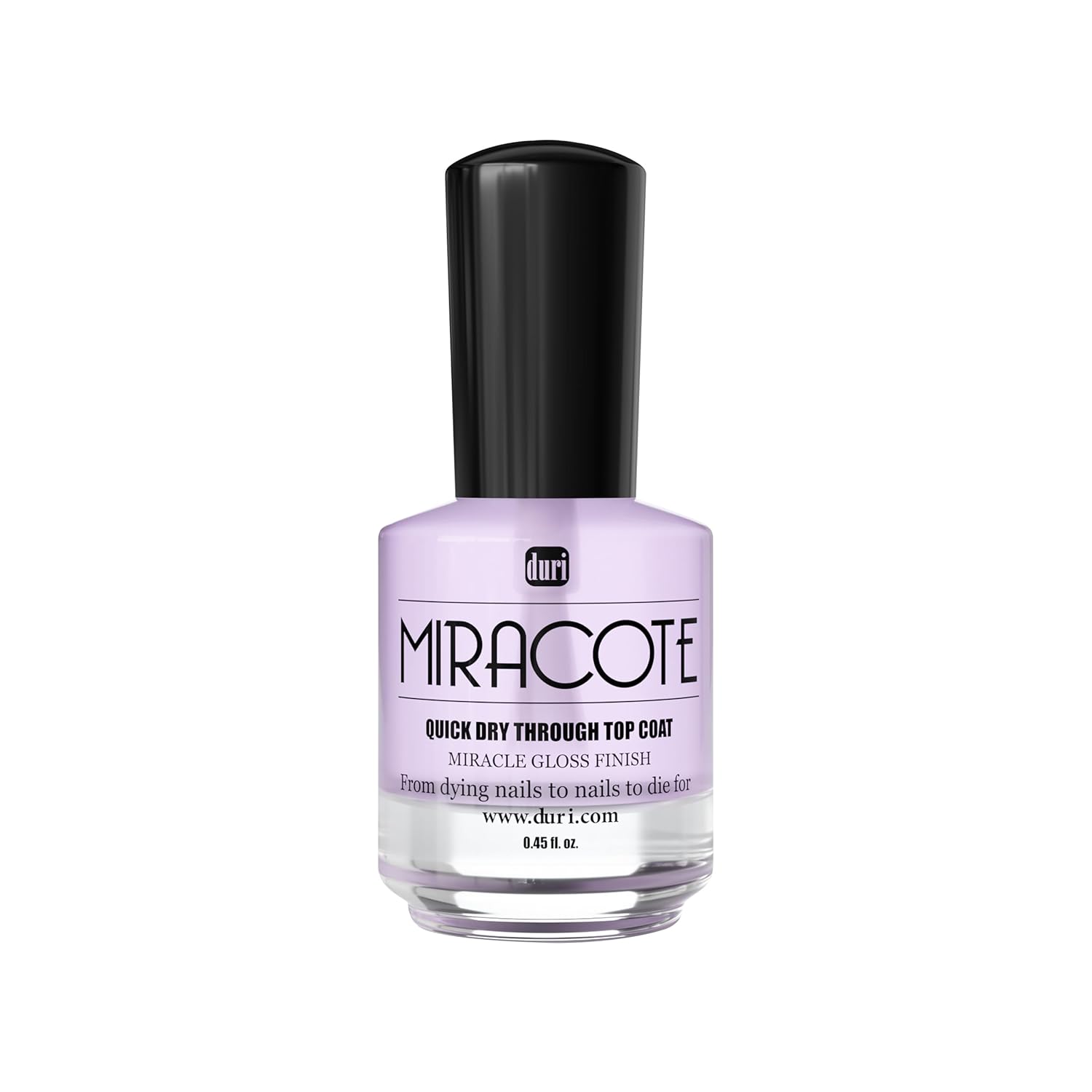 - BENEFITS : Miracote is a powerful quick dry through top coat formulated with a new generation of low viscosity solvents that glide easily over nail polish, it quickly penetrates and dries nail polish down through each layer to the bottom base coat, creating a resilient, durable seal and magnificent gloss finish over nail polish.