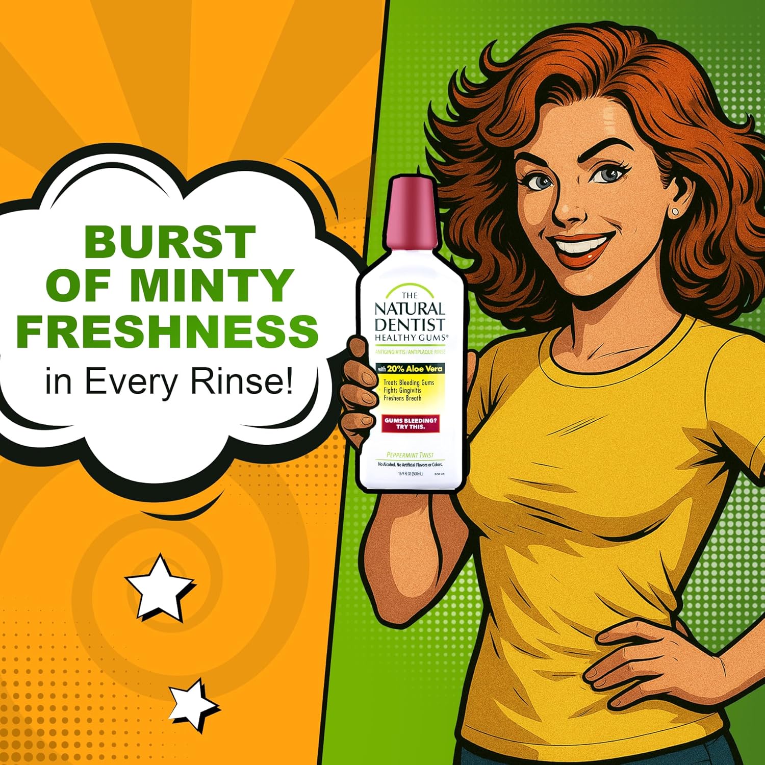 The Natural Dentist Healthy Gums Antigingivitis/Antiplaque Rinse, Adults 12 & Up, Gingivitis Mouthwash, Bleeding Gums Treatment, Safe for Chemotherapy Patients, Aloe Vera, Alcohol-free, 16.9 fl oz