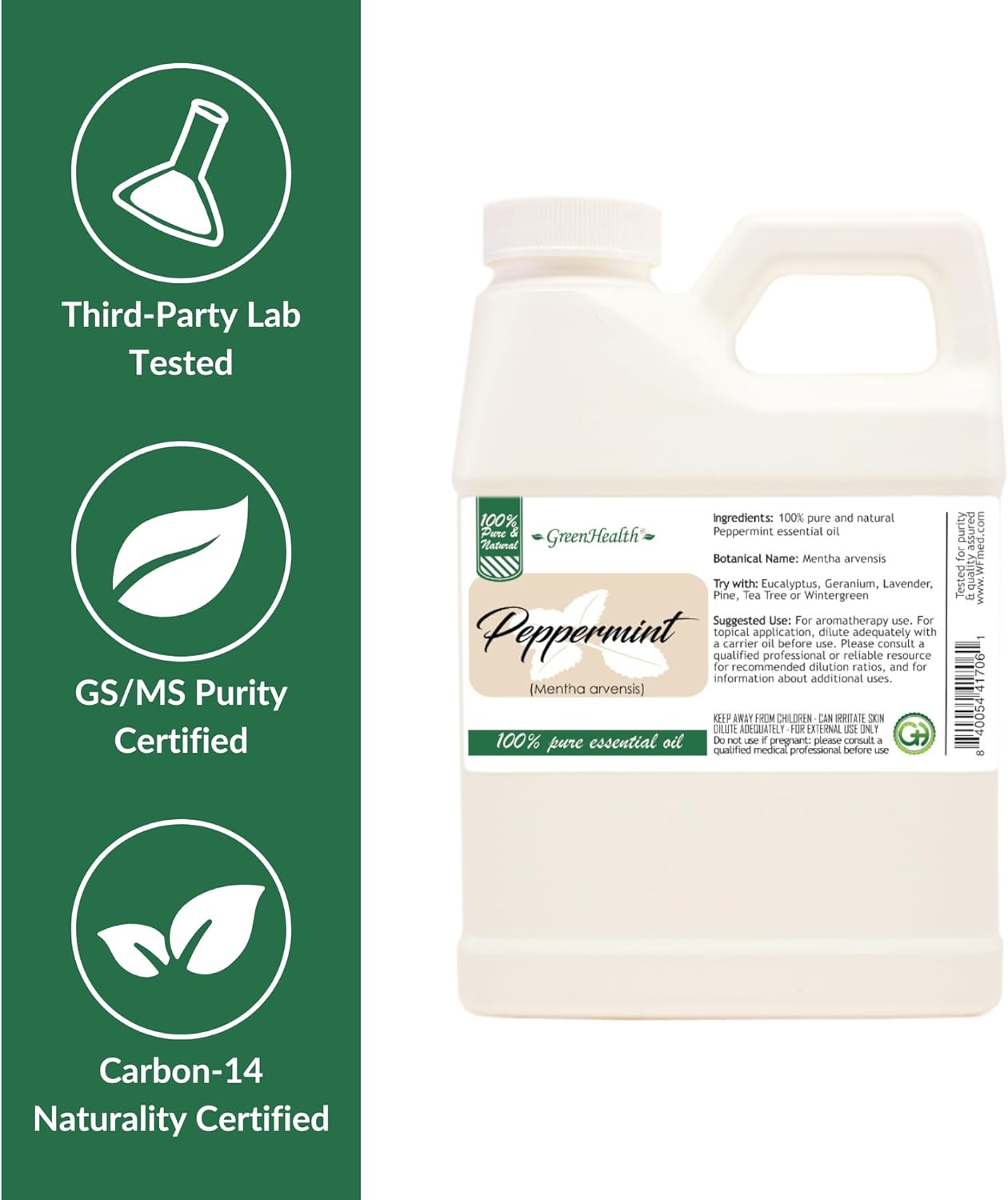 16 fl oz - Peppermint Essential Oil 100% Pure, Uncut, 16 fl oz - GreenHealth