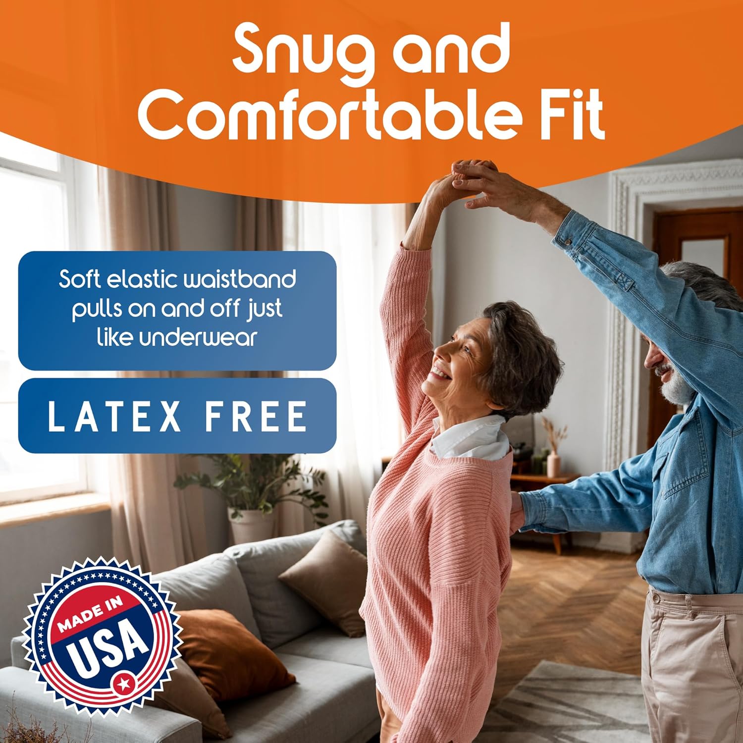 - Premium disposable underwear for men and women: Women and mens incontinence underwear a super absorbent gel core quickly locks fluid away and helps eliminate odors.