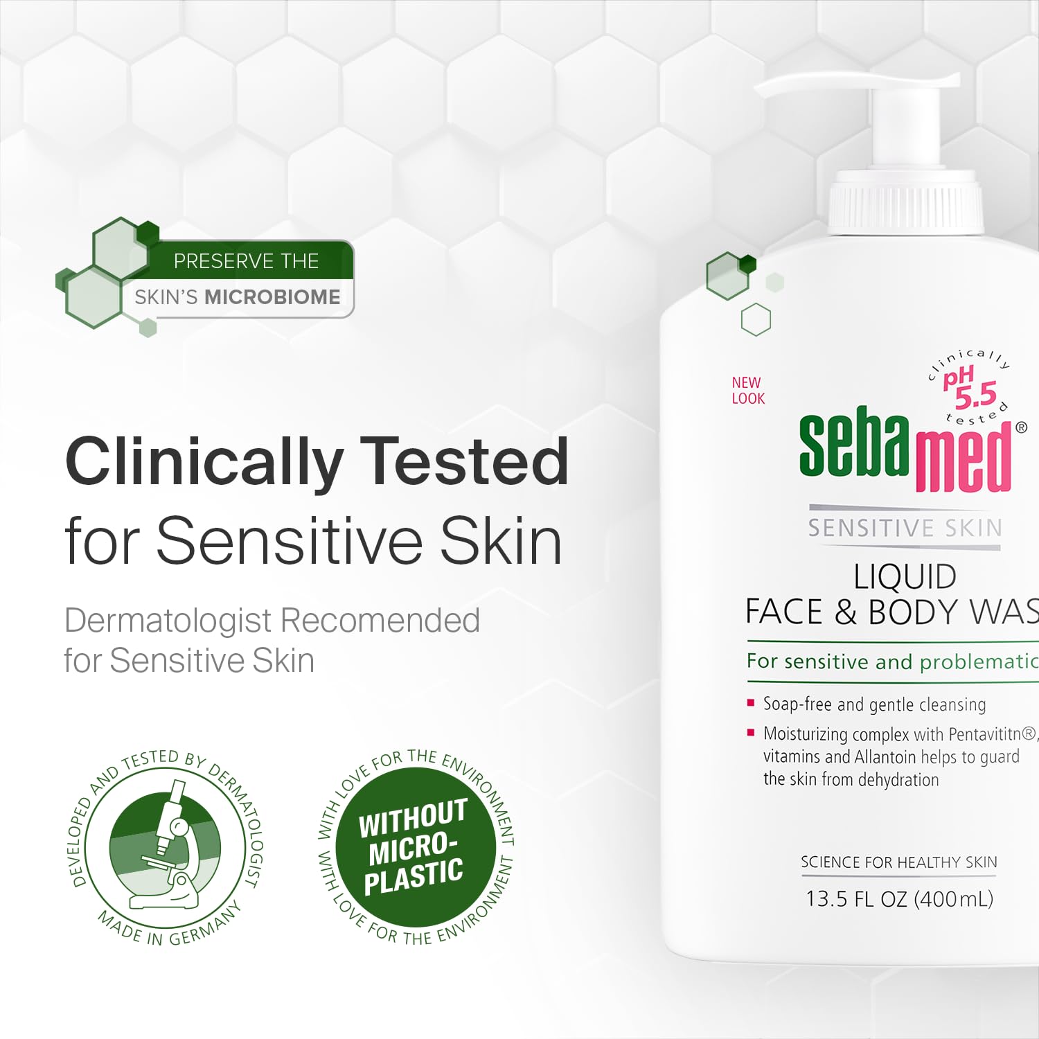 SEBAMED Paraben-Free Liquid Face and Body Wash with Pump pH 5.5 Dermatologist Recommended Mild Hydrating Cleanser for Sensitive Skin 13.5 Fluid Ounces (400 Milliliters)