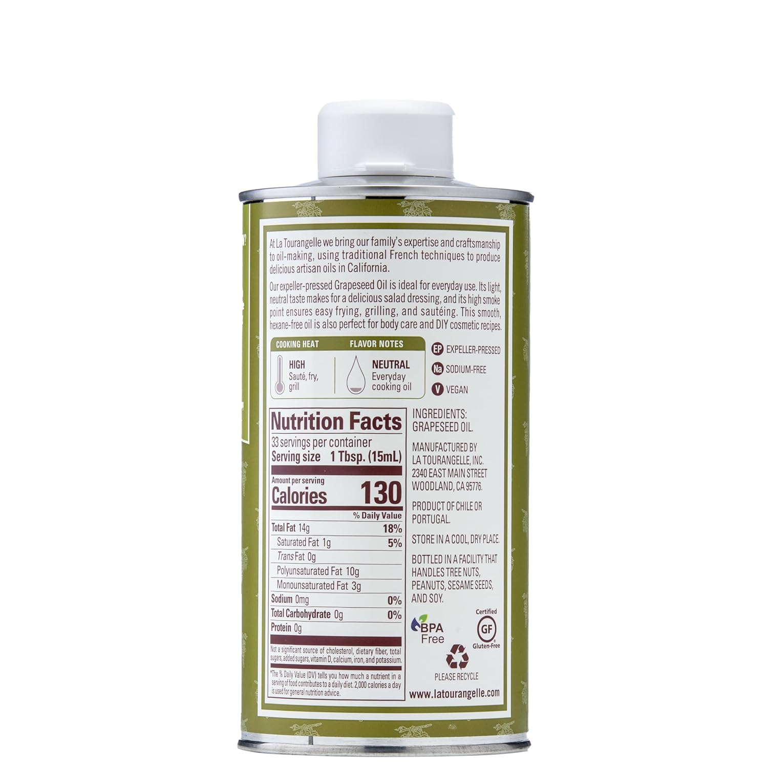La Tourangelle, Expeller-Pressed Grapeseed Oil, High Heat Neutral Cooking Oil, Cast Iron Seasoning, Also Great for Skin, Hair, and DIY Beauty Recipes, 16.9 fl oz