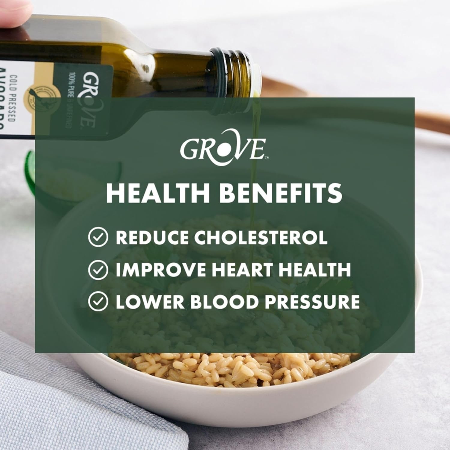Grove Extra Virgin Avocado Oil - Plant Based, Vegan, Gluten Free, 100% Natural, Cold Pressed, High Smoke Point, 16 Whole Avocados in Every Bottle (8.4oz, 250ml)