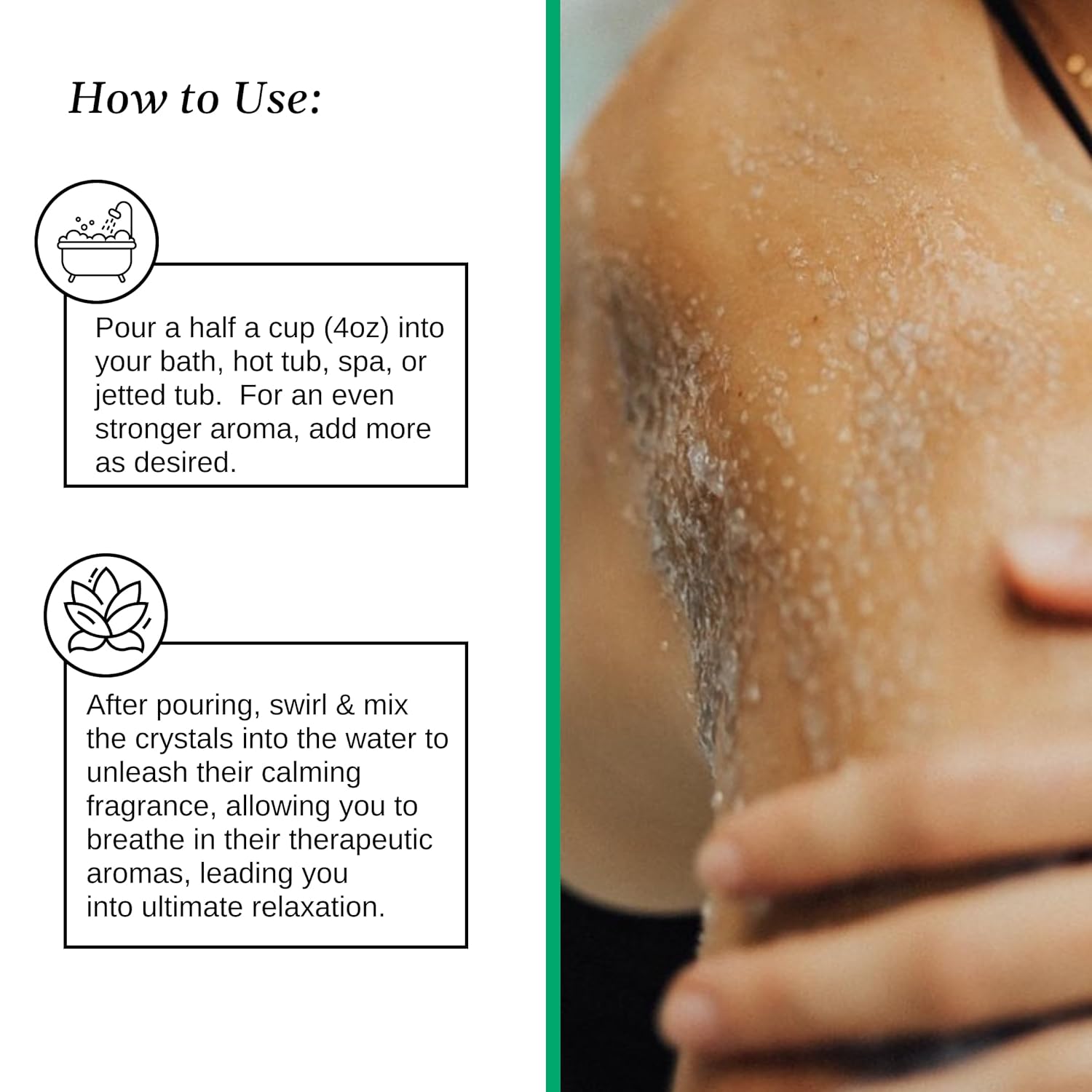 - CRISP EUCALYPTUS MINT SCENT: Cool and invigorating, this fresh eucalyptus mint blend brings a spa-like clarity to every soak. Designed for use in hot tubs and Jacuzzis, these aromatherapy bath salts elevate the mood without overpowering the space.