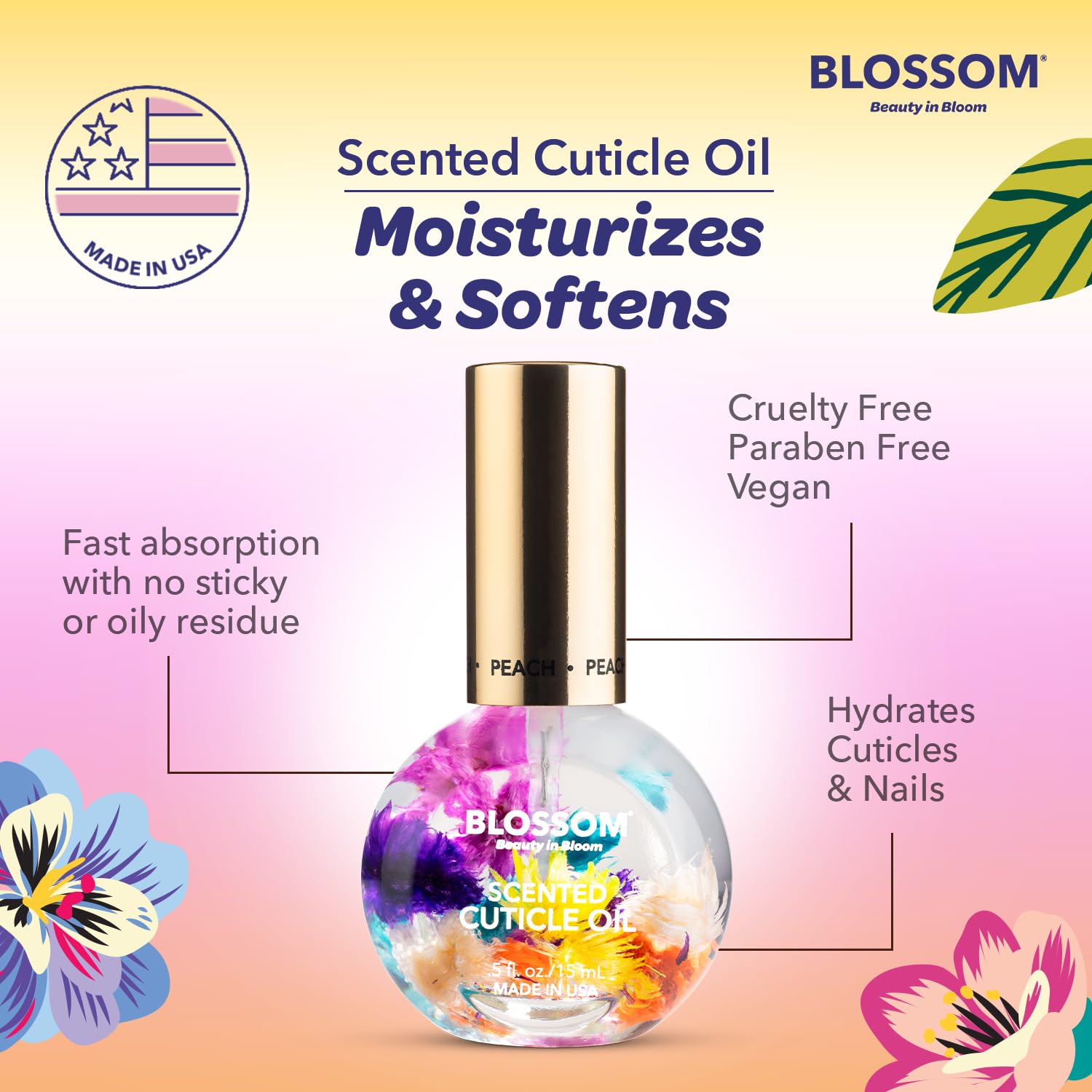 Blossom Cuticle Oil for Nails, Hydrating, Moisturizing, Scented Nail Oil Cuticle Care, Infused with Real Flowers, Made in USA, 0.5 fl. oz, Juicy Peach