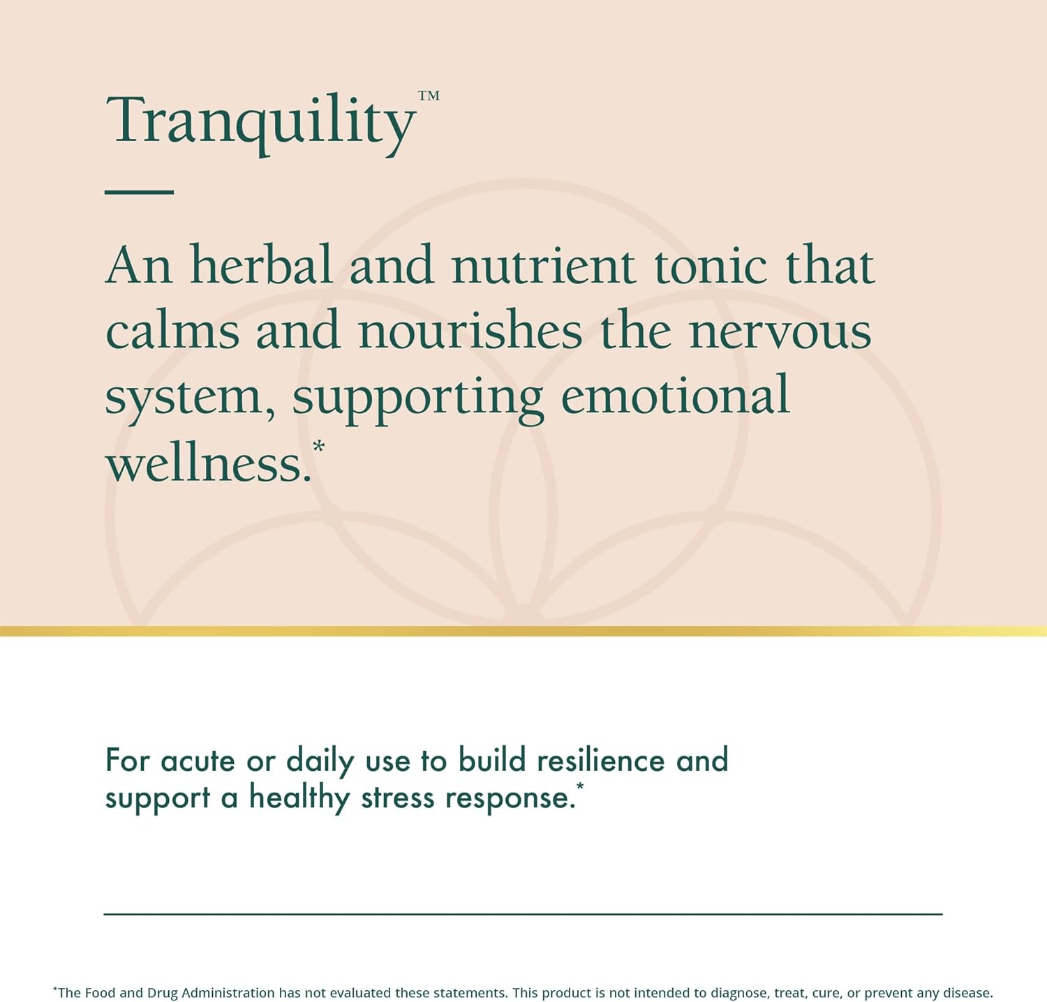 - Tranquility promotes healthy levels of GABA (gamma-aminobutyric acid) and nervine herbs promote relaxation to support sustained calm energy.