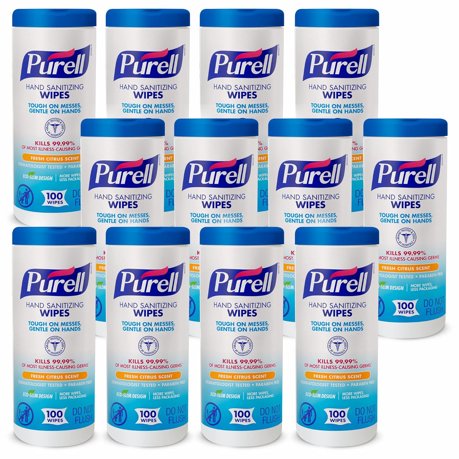 - Case Includes: 12- 100CT PURELL Hand Sanitizing Wipes, Non-Alcohol Formula in Eco-Slim Wipe Canisters
