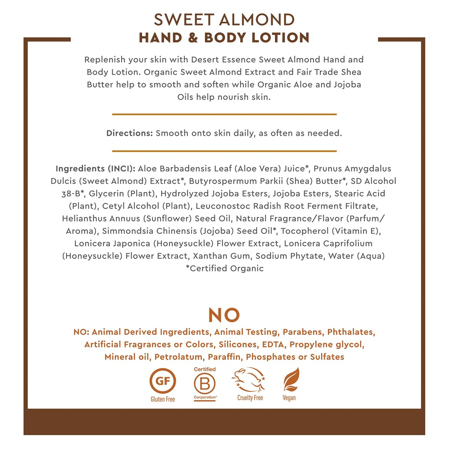 Desert Essence Hand and Body Lotion, Sweet Almond, 8 oz