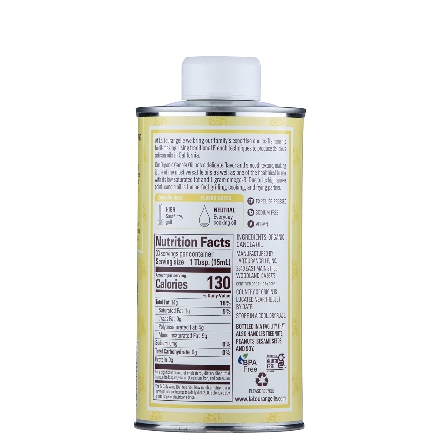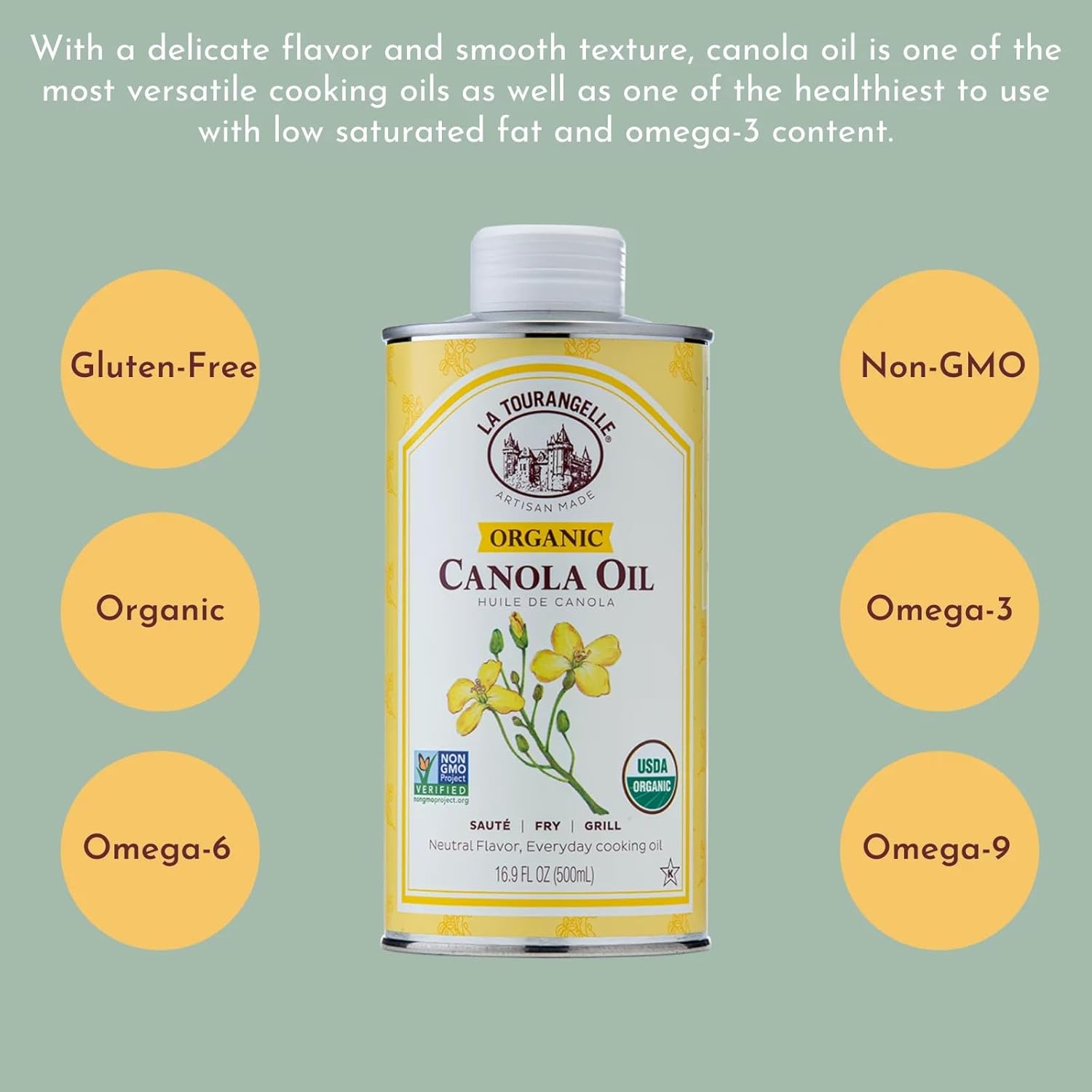 - Traditional and Simple: La Tourangelle Organic Canola Oil is a high quality addition to your everyday cooking. From frying to sautéing, blended salad dressings or sauces, the possibilities are as limitless as your own creativity.