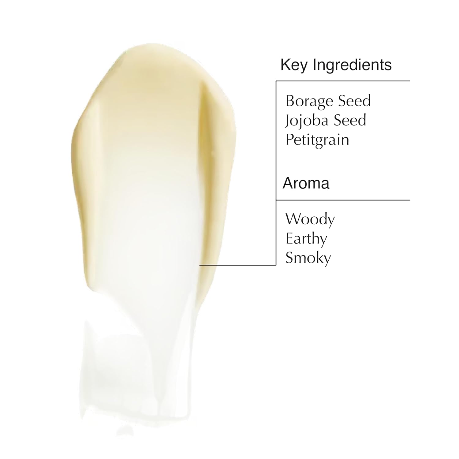- Suited to: Most skin types. Concentrated cream texture. Woody, earthy, smoky aroma.