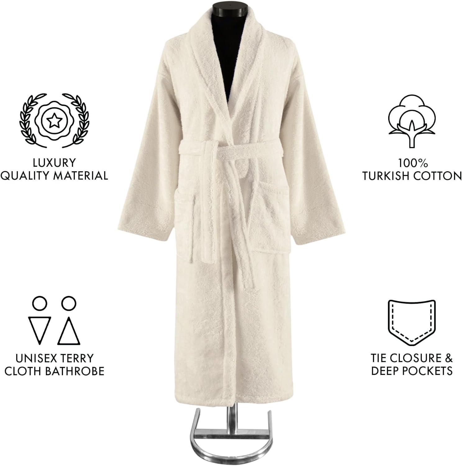 Classic Turkish Towels CTT Premium 100% Turkish Cotton Terry Cloth Bath Robe for Women & Men, Soft & Plush Long Unisex Robe
