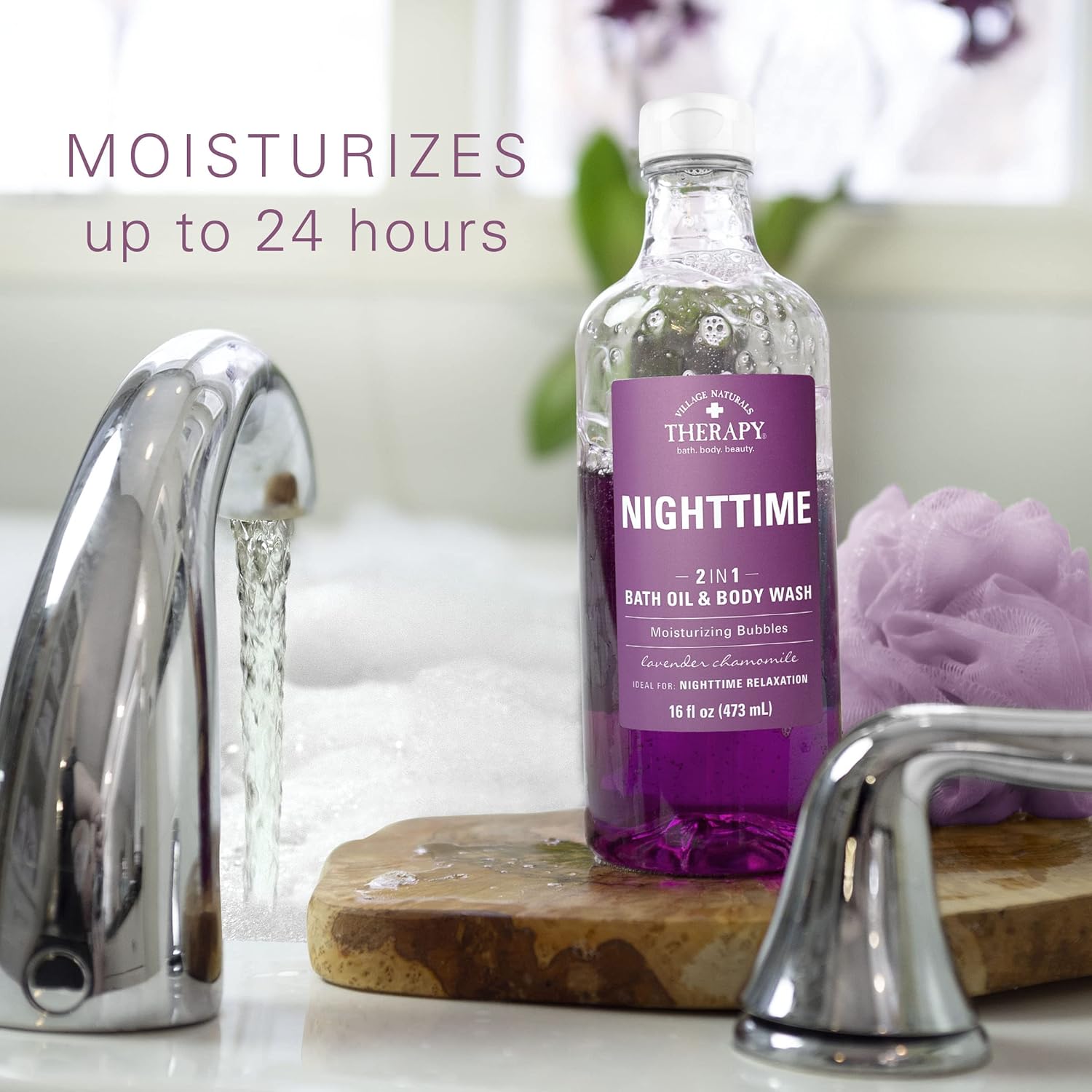- THERAPEUTIC BATHING EXPERIENCE: Getting a good night’s sleep is important for everyone, but sometimes it can be hard to relax before bed. Our Nighttime Relief Bath Oil & Body Wash contains a powerful blend of Essential Oils and Extracts that will help relax your mind and ease sore, overworked muscles. Experience the joy of a relaxing nighttime bath or shower with the soothing fragrance of Lavender and Chamomile.