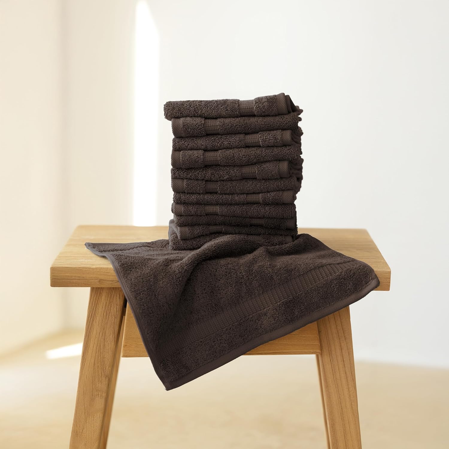 SALBAKOS 100% Turkish Cotton Washcloth Set of 12 13x13 inch | Heirloom Quality | Hotel & Spa Collection | Ultra Soft, Super Absorbent, Washcloth Towels | Made in Turkey (Chocolate, 12 Washcloths)