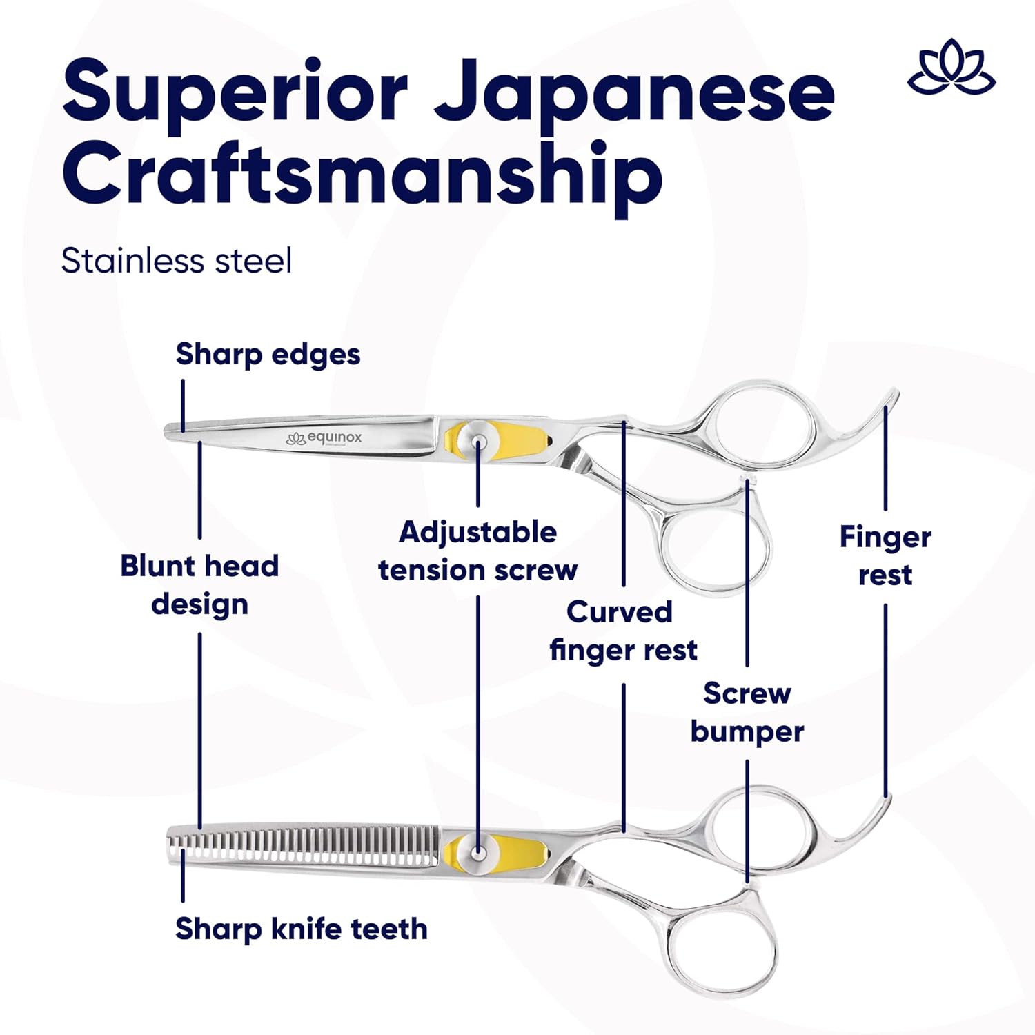 Equinox Professional Razor Edge Series Hair Cutting Scissors Set - Barber Hair Cutting & Thinning Shears/Texturizing Scissors Set - 6.5 Inches Hair Cutting Scissors Kit for Men/Women/Kids/Salon & Home
