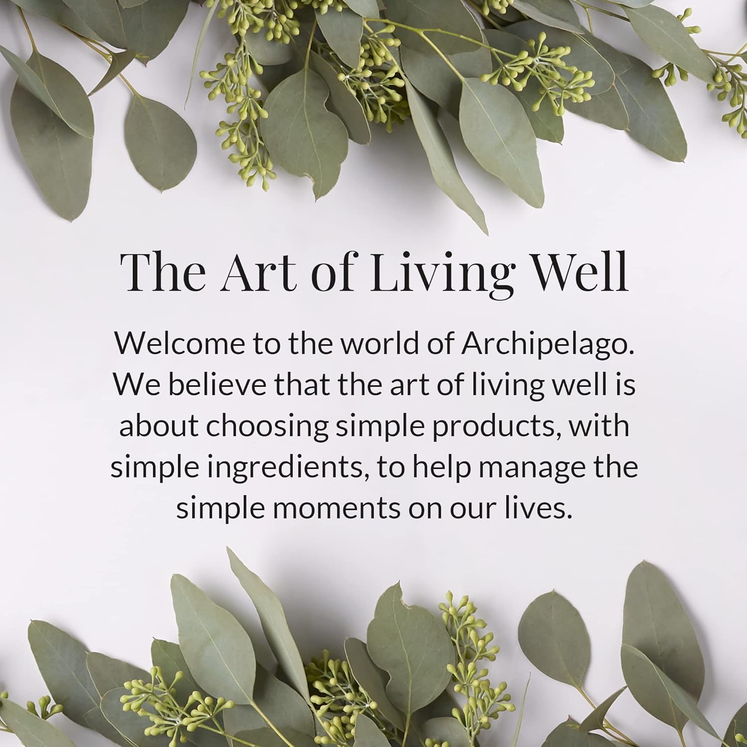 - The Art of Living Well: At Archipelago Botanicals, we believe that the art of living well is about choosing simple products, with simple ingredients, to help manage the simple moments in our lives; Made in the USA with domestically or globally sourced materials