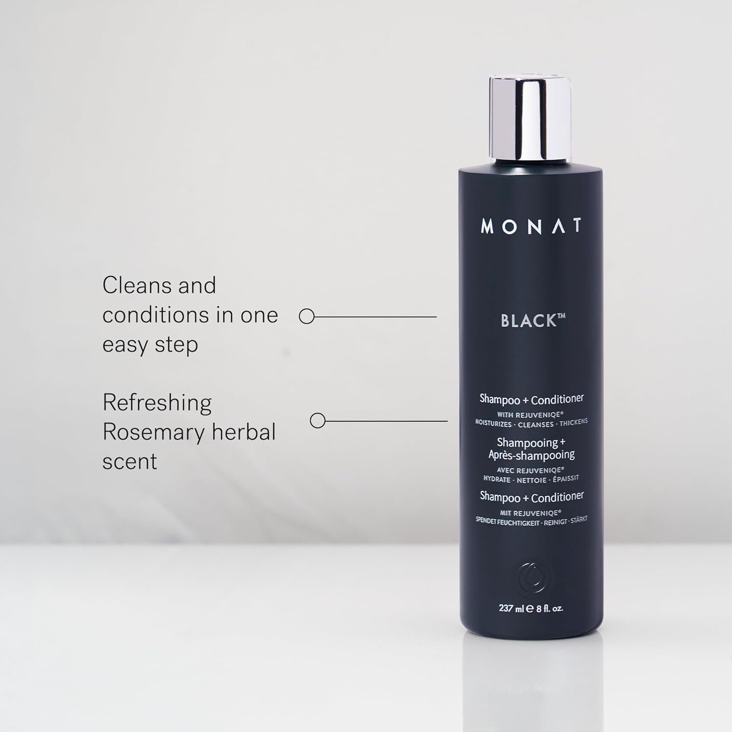 - [NATURAL AND SAFE]: MONAT Black Shampoo + Conditioner is a naturally based formula with a refreshing Rosemary herbal scent.*