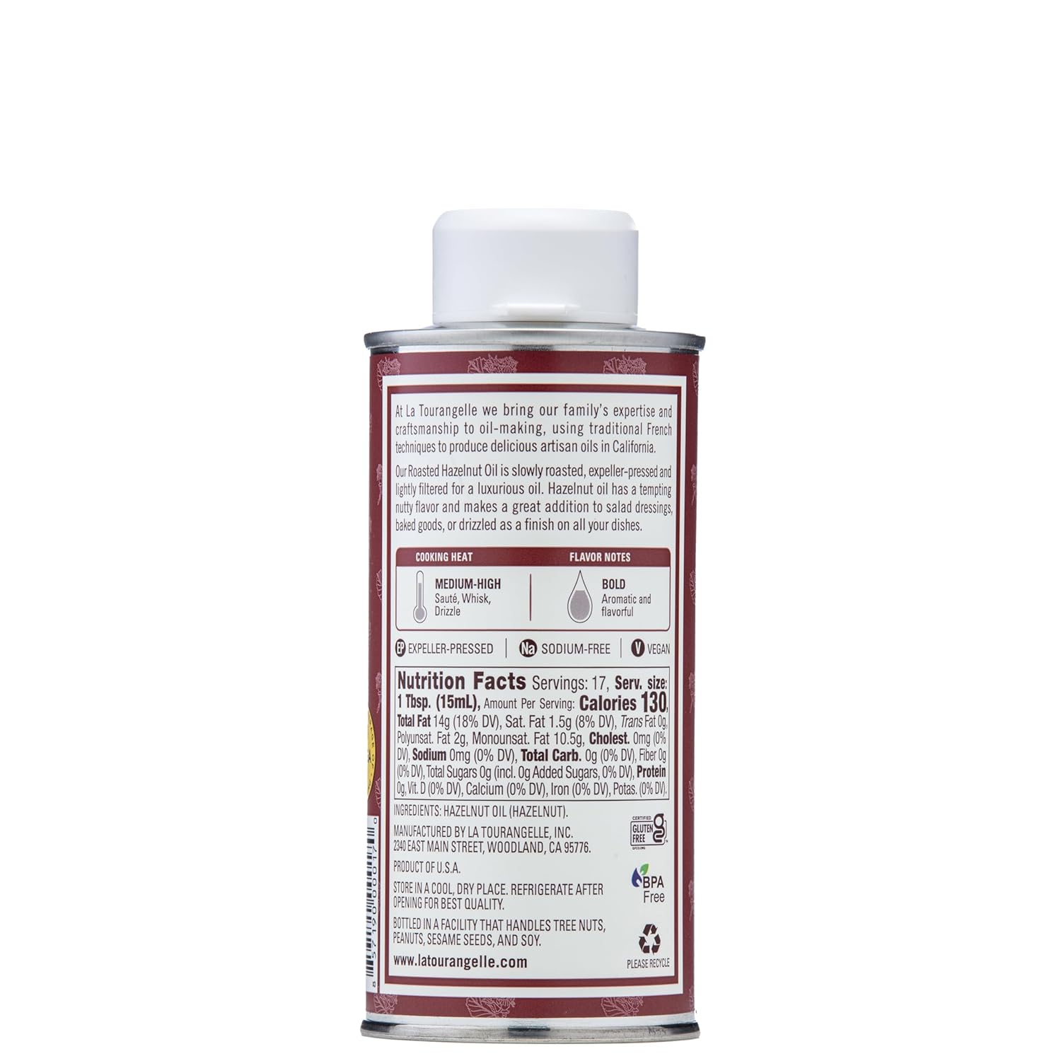 La Tourangelle, Roasted Hazelnut Oil, High-Oleic Oil Great for Baking, Stir-Frying, and Vinaigrettes, 8.45 fl oz