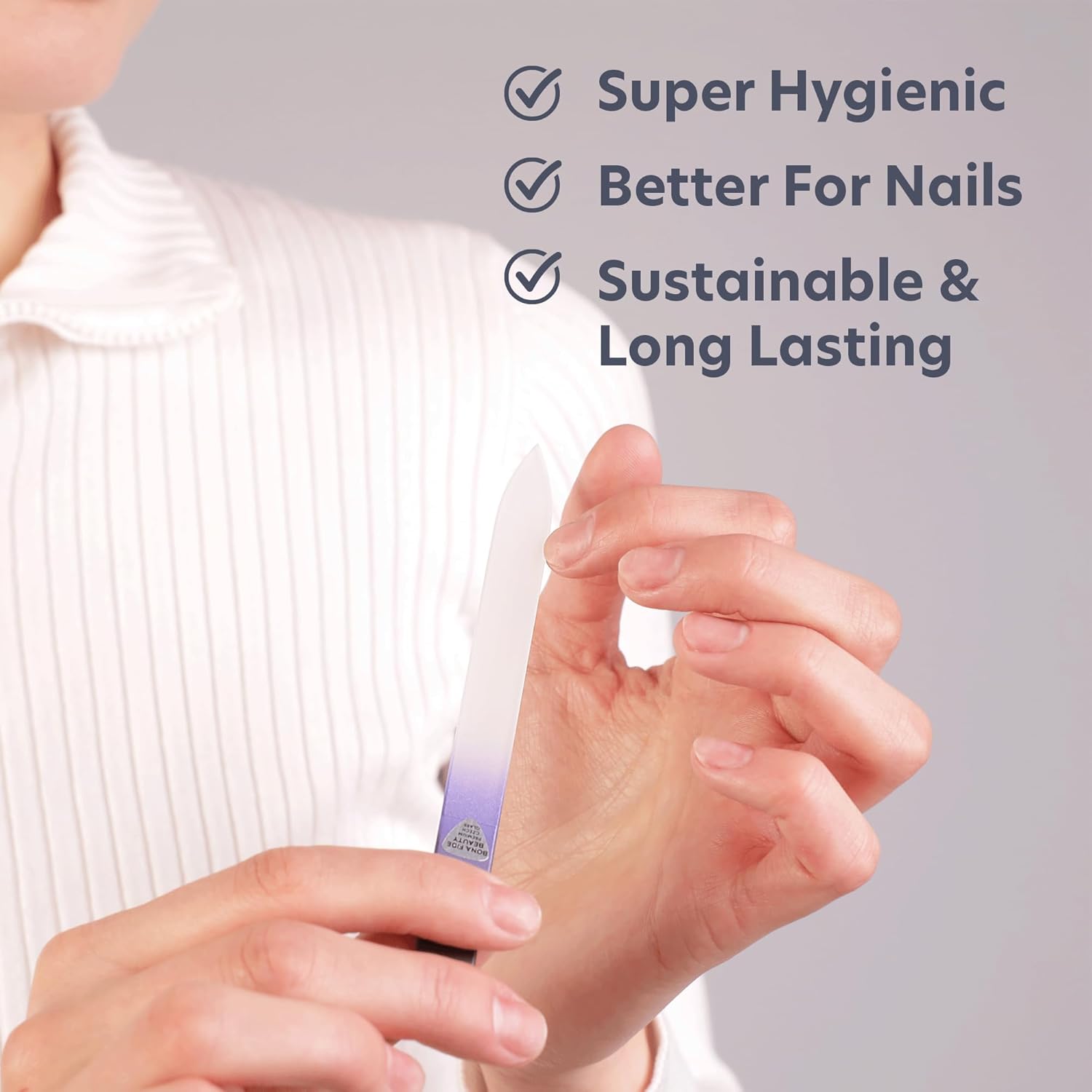 - Durable, Long-Lasting, Reusable Czech Glass Files - Czech glass nail files are tempered (strengthened) and therefore is further long lasting than other nail files. They can also be washed and reused continuously.