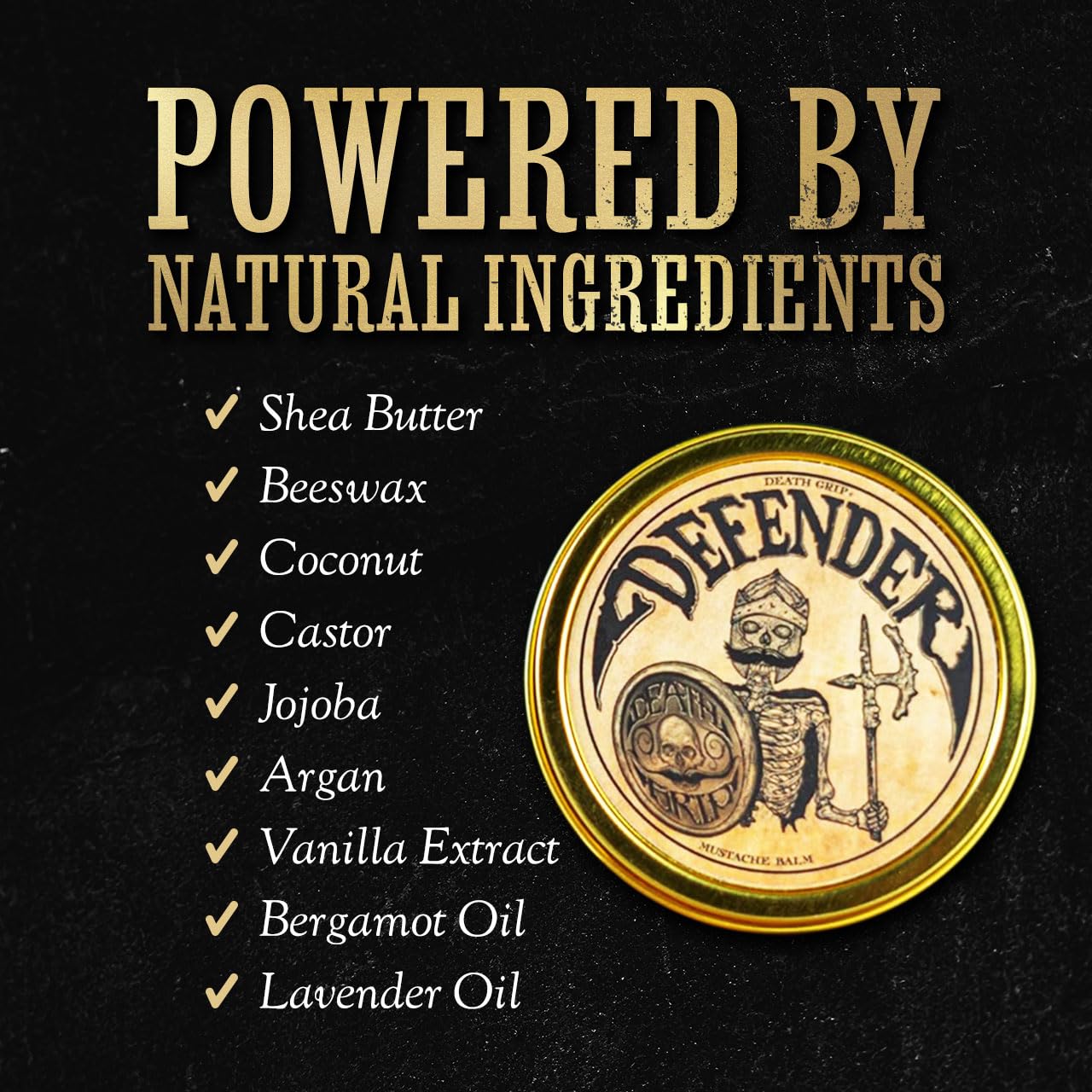 Mustache Balm for Men – Light to Medium Hold Beard & Moustache Wax – Natural Styling & Conditioning Grooming Kit – Soften & Shape Facial Hair 2oz – Death Grip