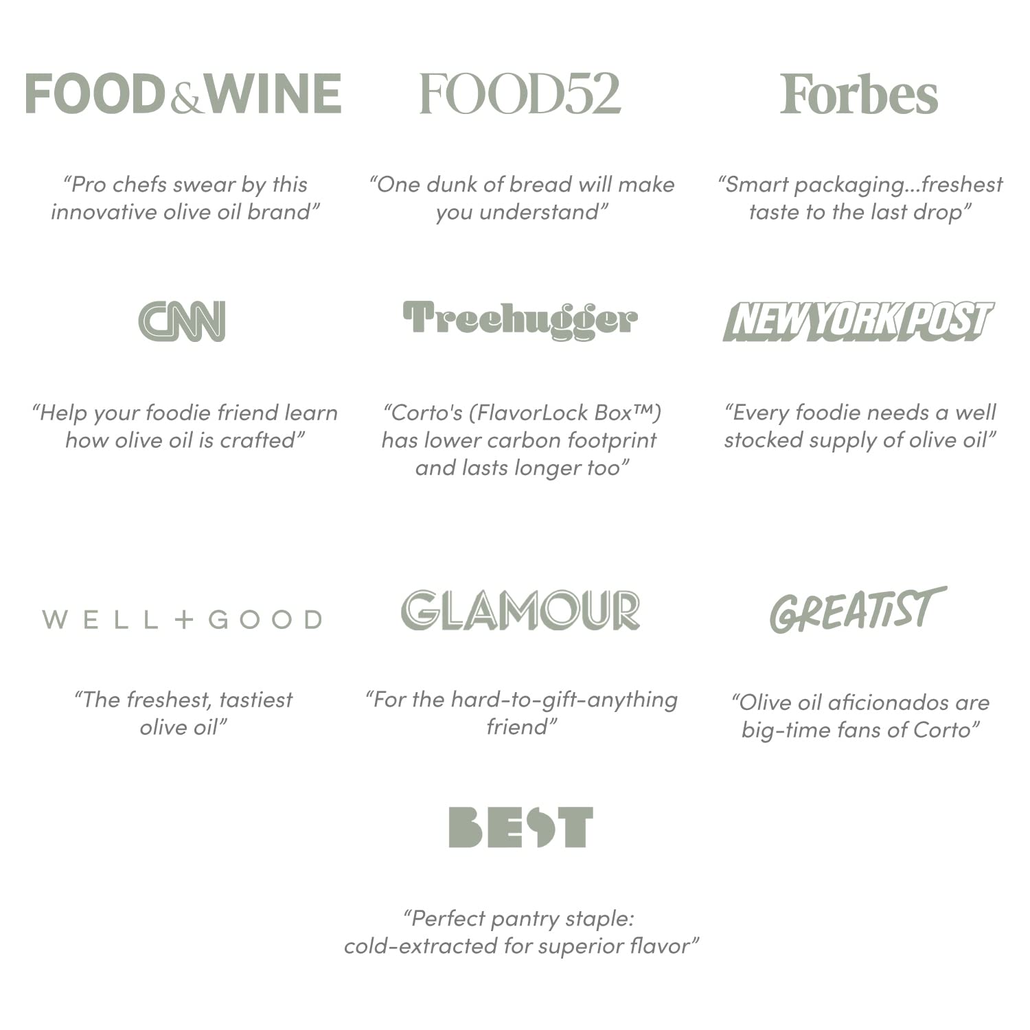 - CHEF CHOSEN – Some of the best chefs in the industry choose Corto. They know we’ve worked to craft the best oils for each technique and meal.
