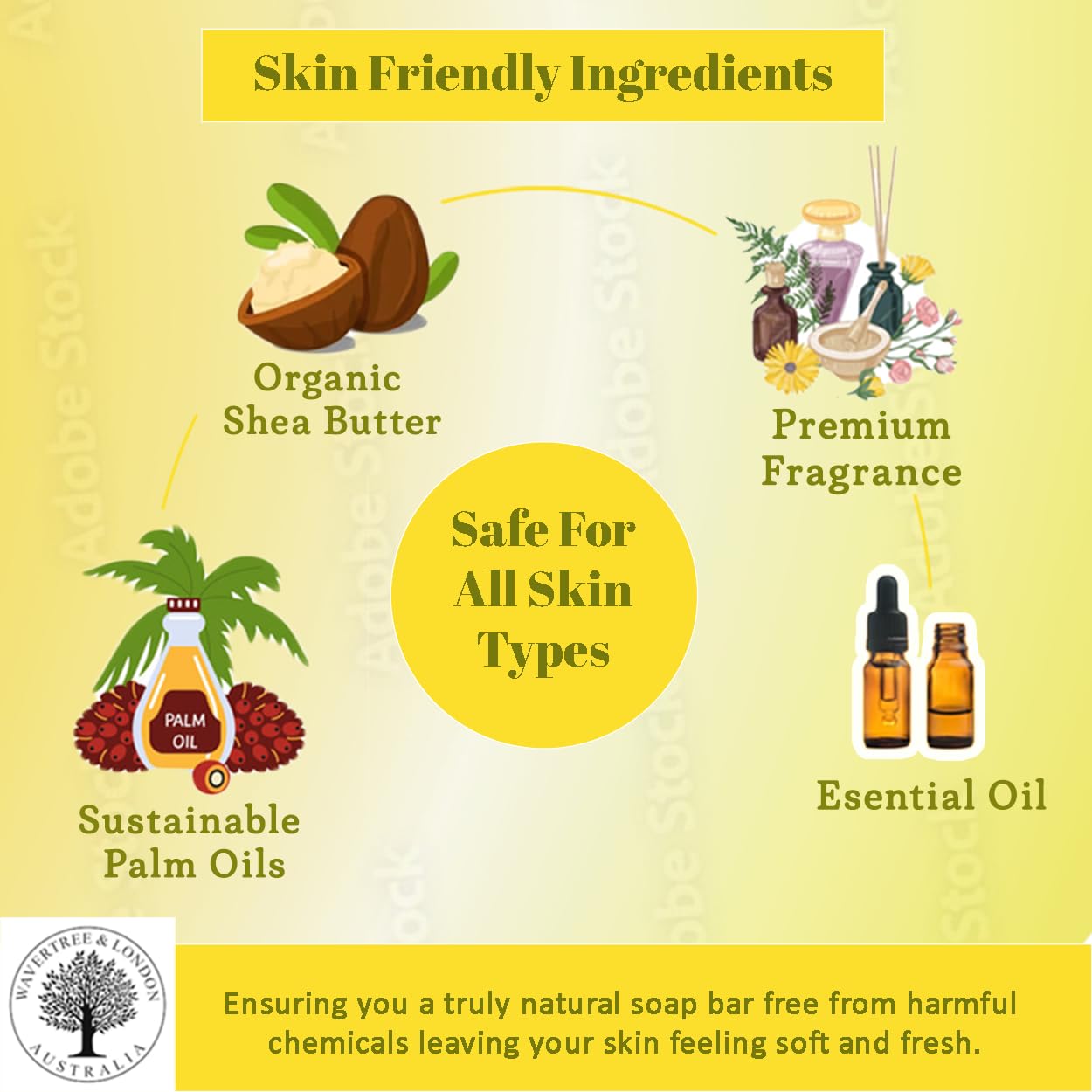 - 📋 Ingredients: Sustainable Palm oil, Palm Kernel Oil, Aqua (water), Certified Organic Shea Butter, Vegetable Glycerin, Essential Oils and/or Fragrance, Sodium Gluconate (natural sugar-based preservative), Sodium Chloride, Titanium Dioxide (food grade)