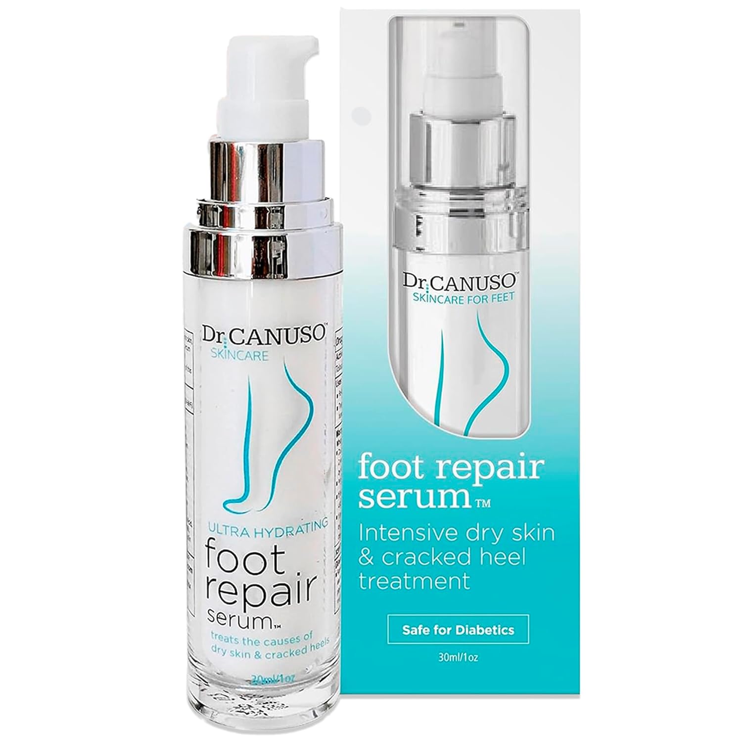 - WHY SERUM? : When you use a foot cream or lotion it only reaches the outer layer of your skin. Dr Canuso's foot repair serum penetrates deep within your skin for maximum benefits. Our patent-pending foot repair serum exfoliates, nourishes, and fights the root causes of dry cracked heels to restore healthy, hydrated feet that look and feel great.