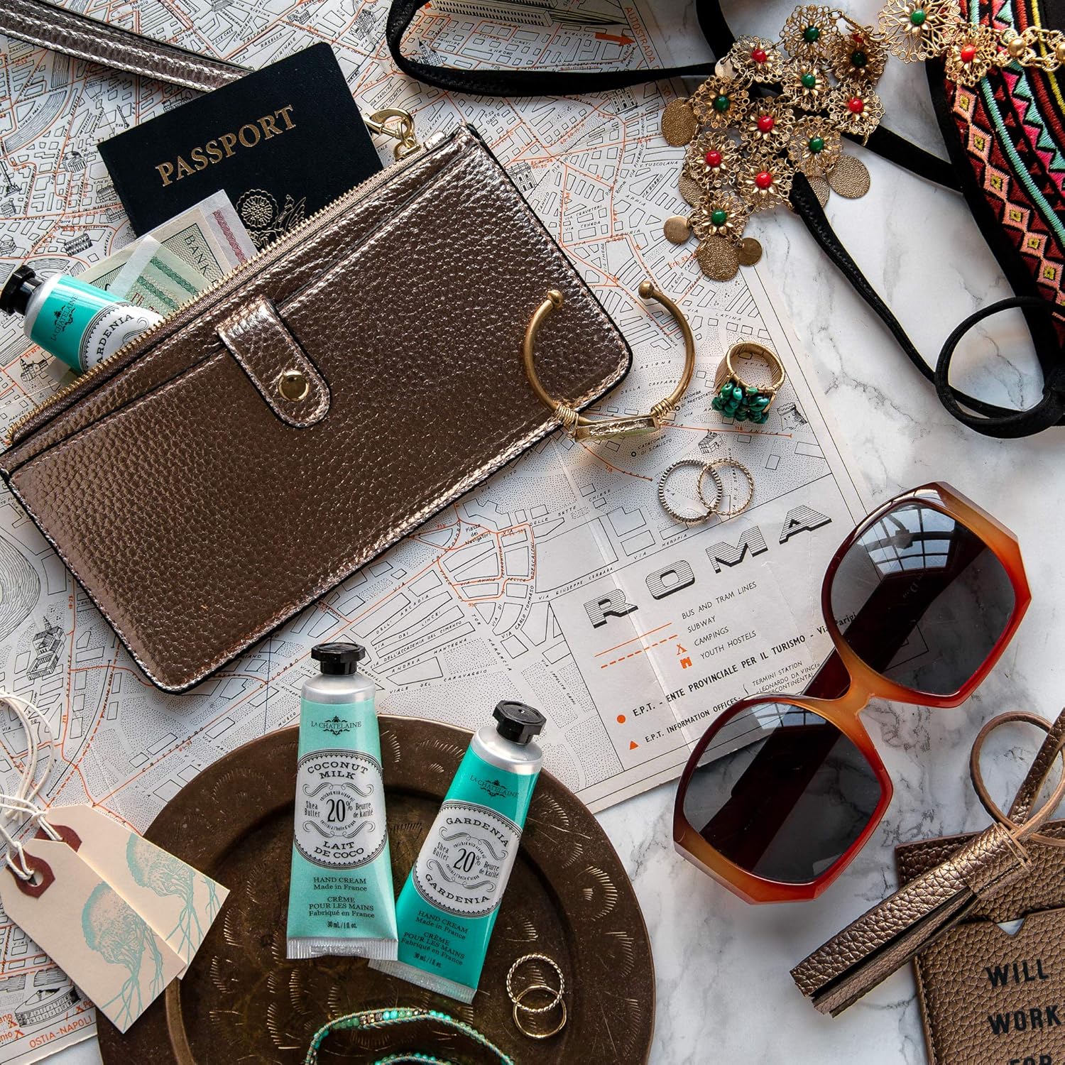 La Chatelaine 20% Shea Butter Hand Cream Travel Size, Organic Argan Oil, Moisturizing, Nourishing, Repairing, Extra-Rich Hand Lotion, Made in France, Paraben Free, 1 oz / 30ml (Gardenia)