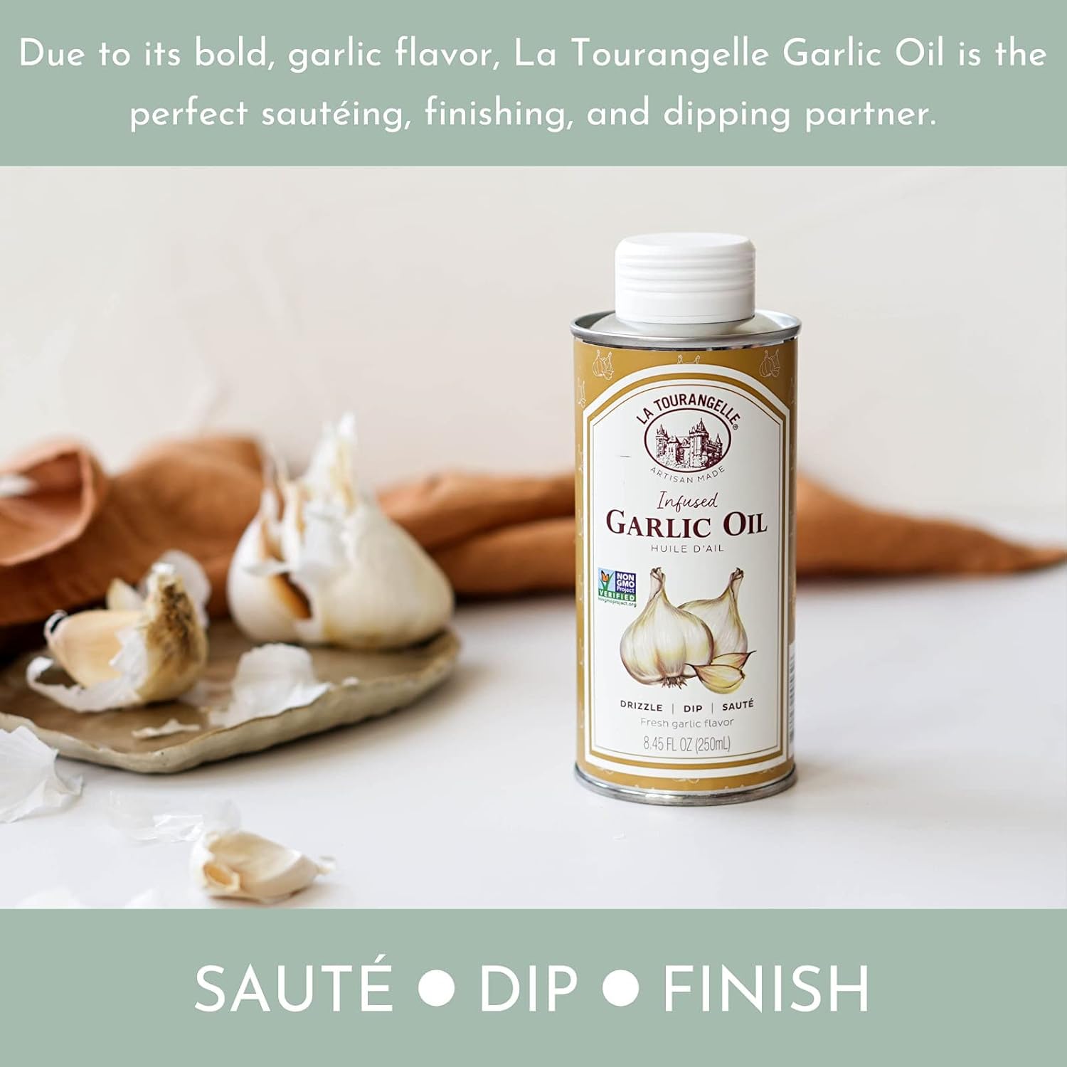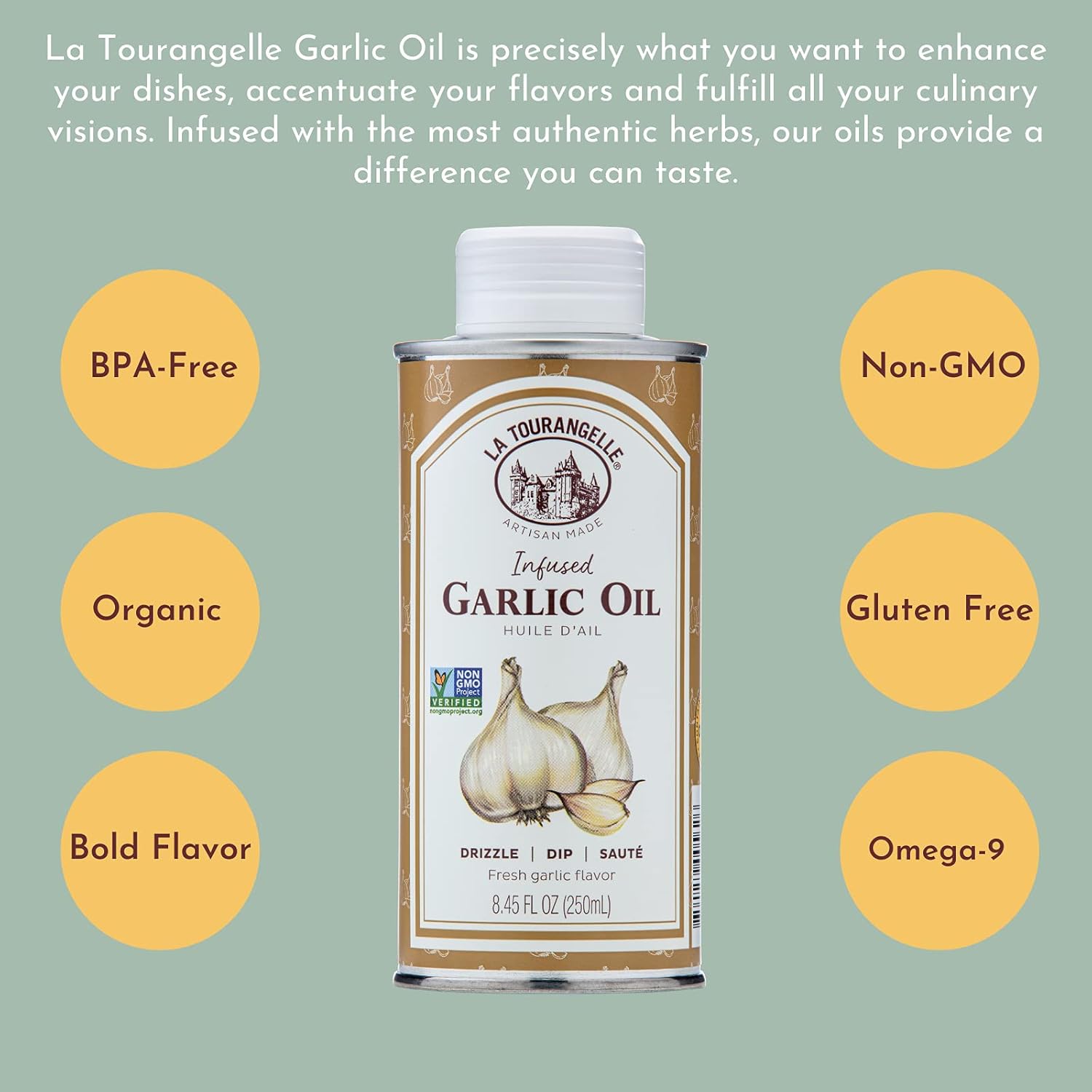 La Tourangelle, Garlic Oil, High Oleic Oil for Cooking Pastas, Salad Dressings, Drizzle on Popcorn, Irresistible Aroma and Flavor, 8.45 Fl Oz