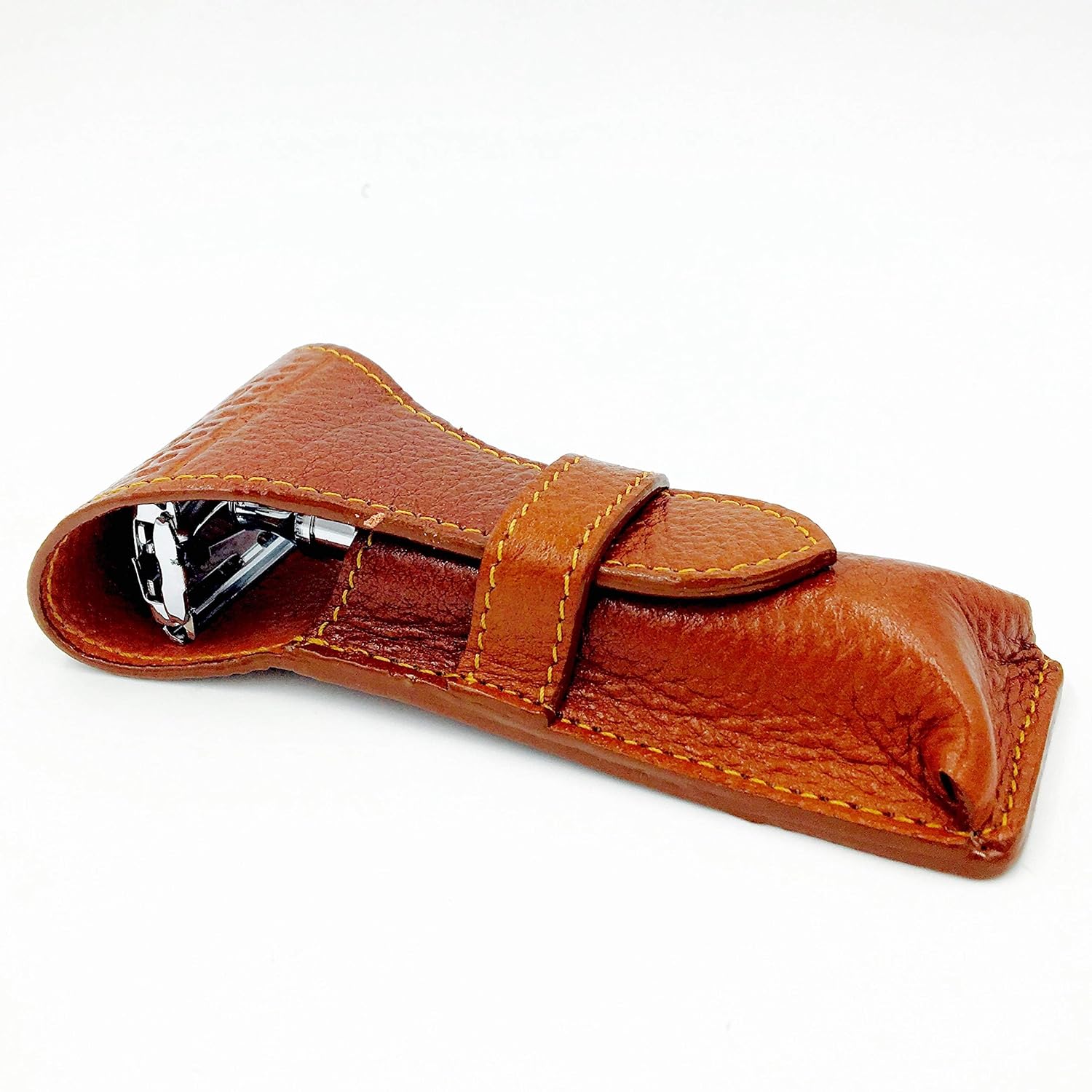 Parker Genuine Leather Travel Case for Safety Razor — Stylish Protective Storage Pouch for DE Razors (For Standard & Long Handle Lengths)