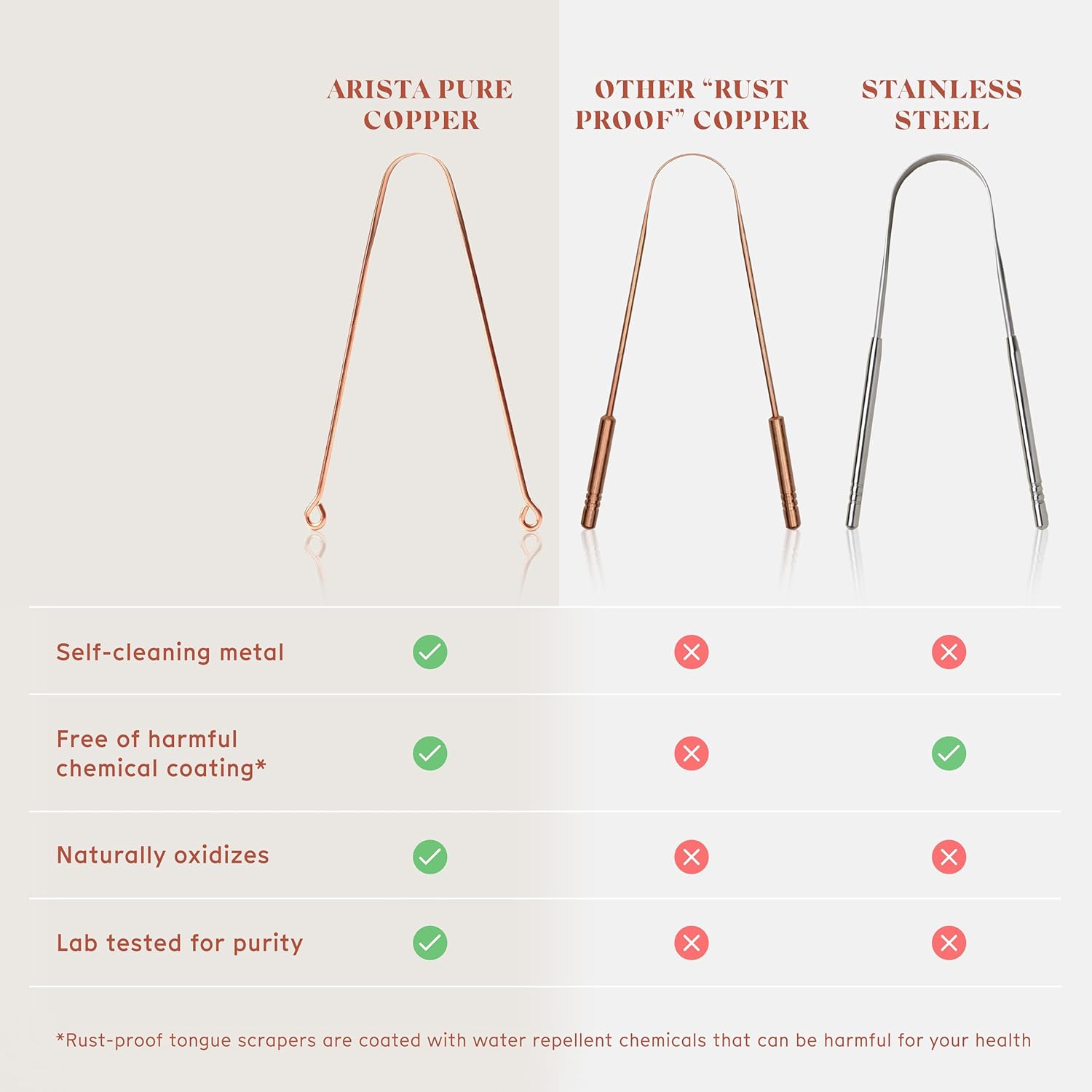 Arista 100% Copper Tongue Scraper for Adults & Kids – Metal Tongue Scraper Copper for Bad Breath, Oral Care & Hygiene – 2 Pack with Travel Pouches