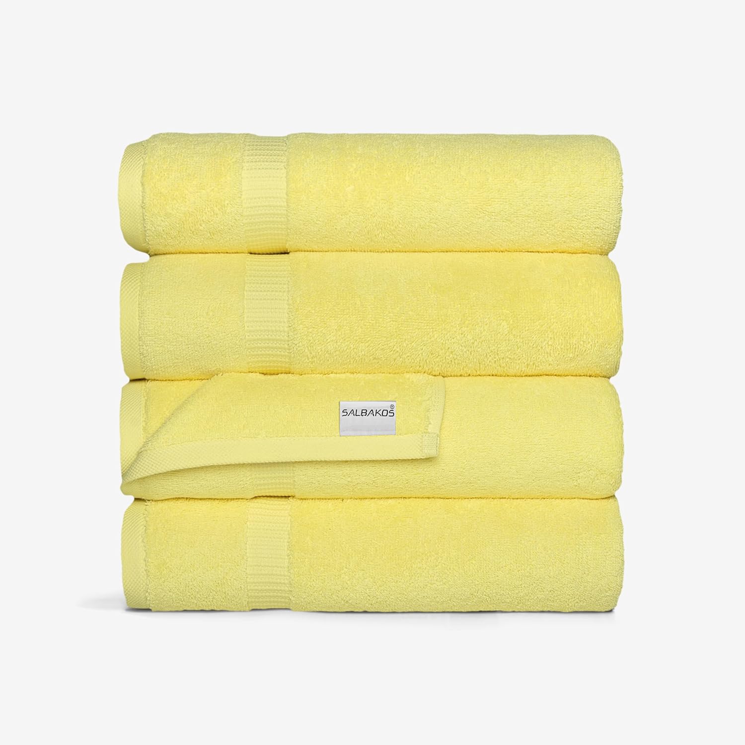 SALBAKOS 100% Turkish Cotton Bath Towel Set of 4 27x54 inch | Heirloom Quality | Hotel & Spa Collection | Soft, Super Absorbent, Long Lasting Bath Towels | Made in Turkey (Yellow, 4 Bath Towels)