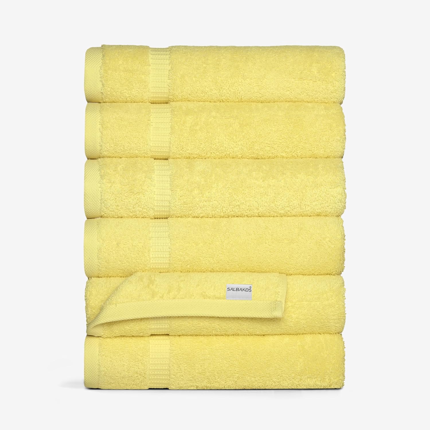 SALBAKOS 100% Turkish Cotton Hand Towel Set of 6 16x30 inch | Heirloom Quality | Hotel & Spa Collection | Soft, Super Absorbent, Long Lasting Hand Towels | Made in Turkey (Yellow, 6 Hand Towels)