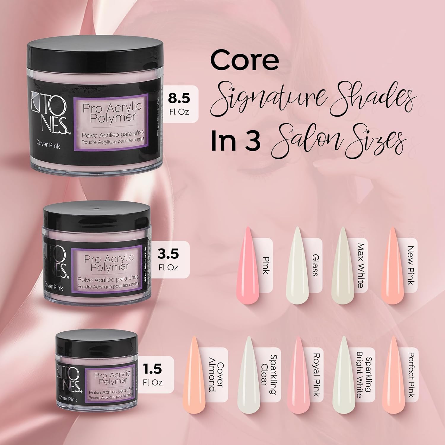 Tones Pro Acrylic Nail Powder, Cover Pink (Soft Nude Pink), (8.5 Fl Oz) - Long-Lasting & Non-Yellowing Polymer for Salon Quality Nail Extensions & 3D Art