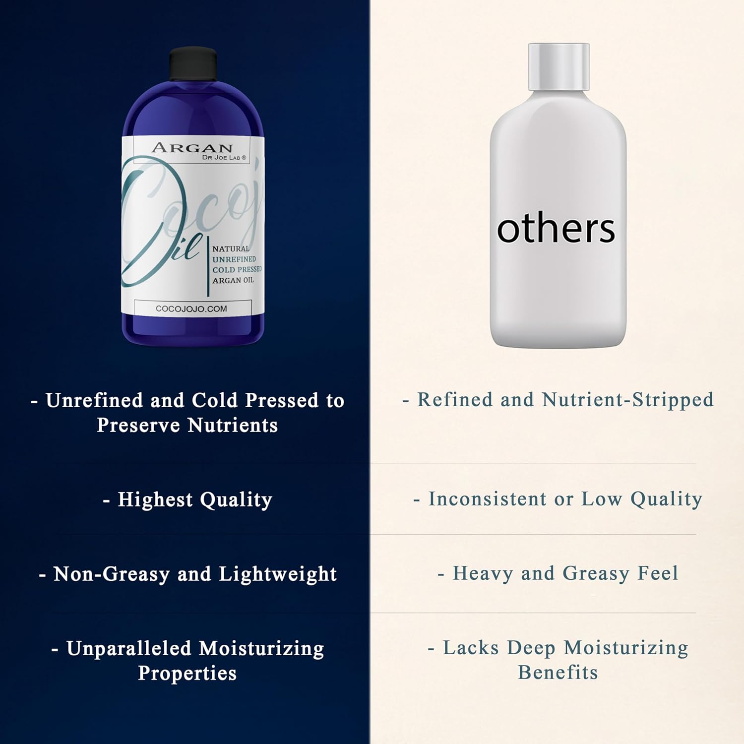 - Cocojojo Moroccan Argan Oil is Pure, Natural and Cold Pressed.