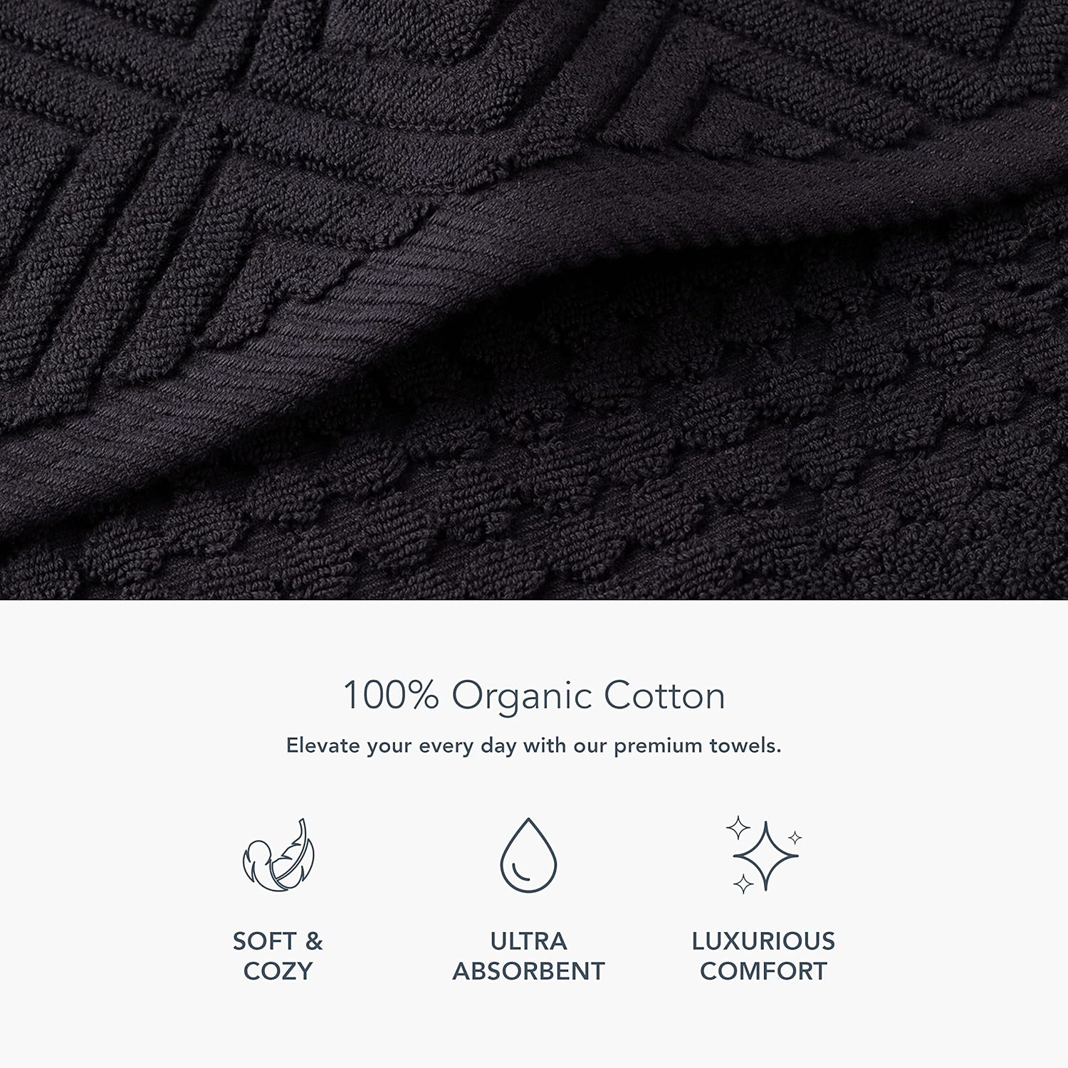 Texere 100% Organic Cotton Diamond Jacquard 700 GSM Luxury Bath Towel Sets - Spa Quality Bath Towels, Hand Towels, Washcloths (Diamond, Black, 6 Piece)