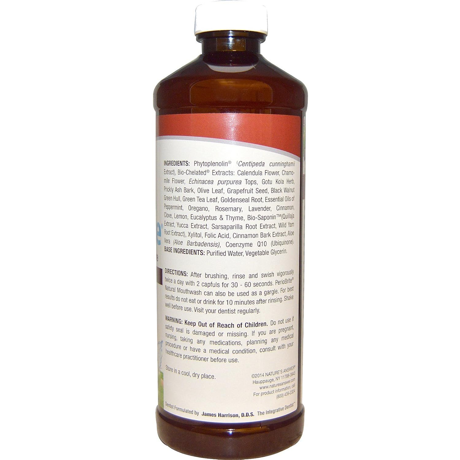 - ADVANCED BOTANICAL FINGERPRINT TECHNOLOGY: By creating one of the most comprehensive collections of plant specimens in the world and identifying each plantās distinctive botanical fingerprint, Natureās Answer can compare and analyze the quality and purity of every incoming botanical used to formulate their products, assuring you that the wildcrafted herbs, Oregano, Cinnamon and Clove in Natureās Answer PerioBrite Natural Mouthwash are the purest, highest-quality botanical ingredients.