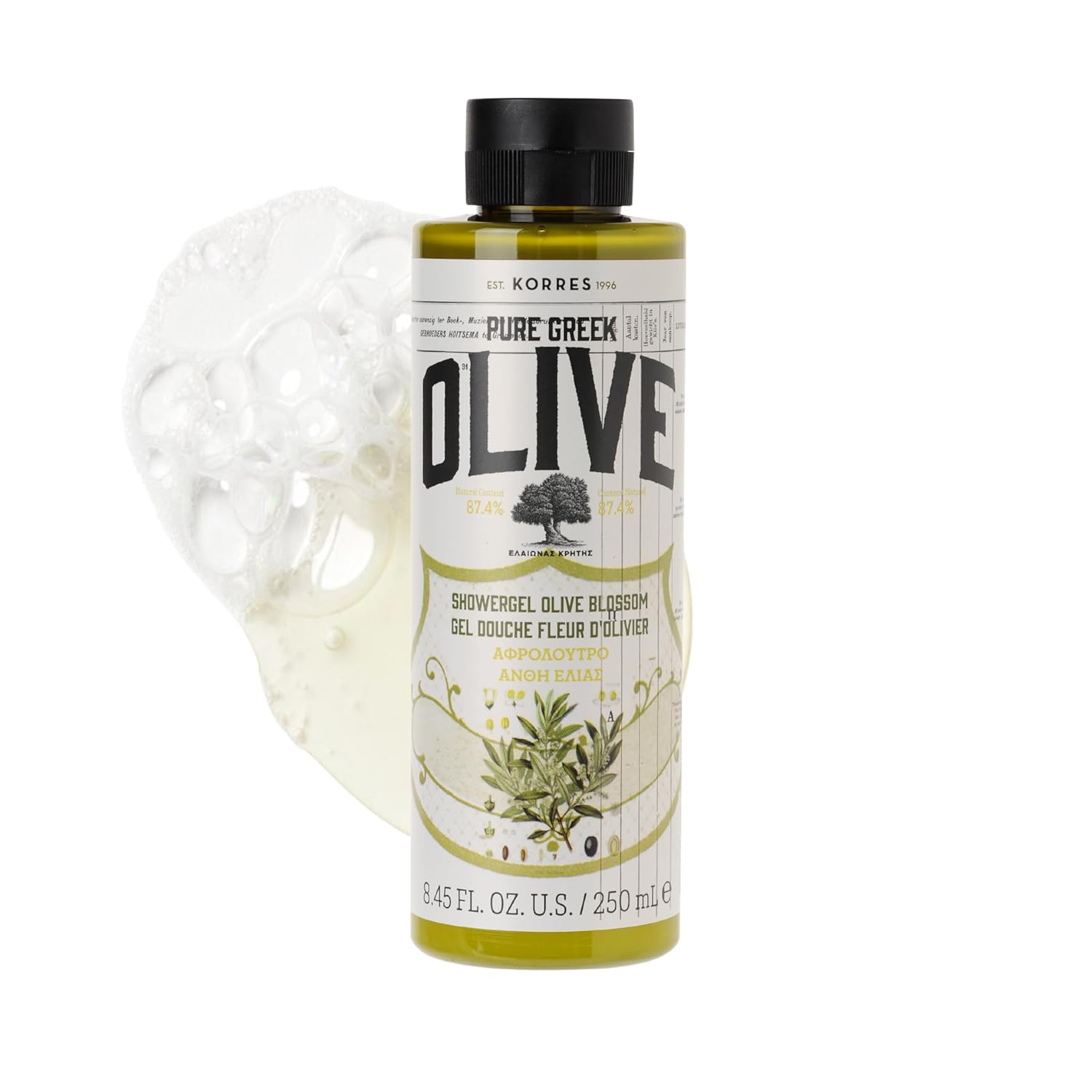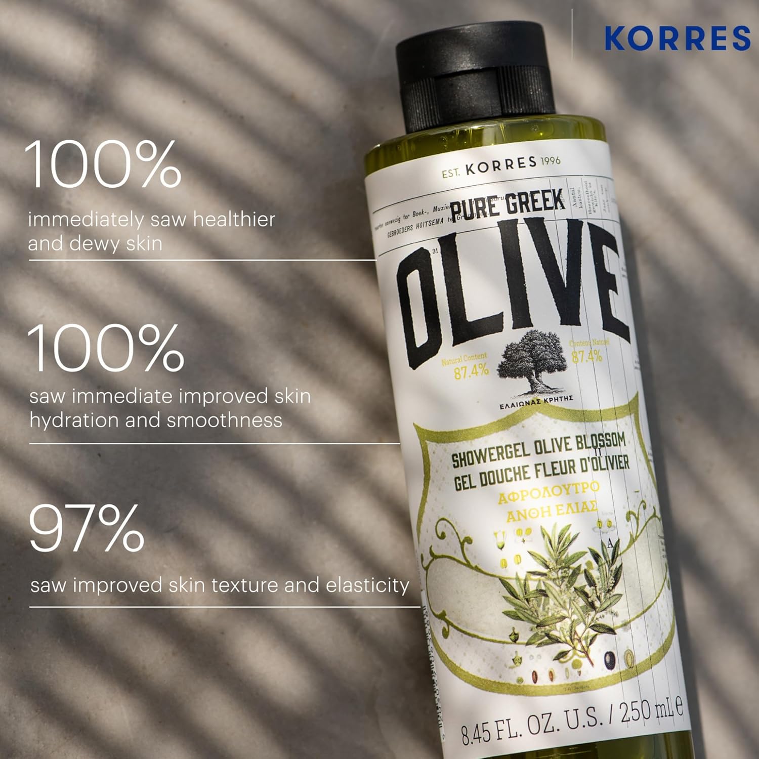 KORRES Shower Gel for Dry Skin, Moisturizing Body Wash Cleanser Made with Pure Greek Olive Oil, Hydrating and Nourishing Bath Soap for Smooth, Supple Skin, Olive Blossom Scented, 8.45 fl oz