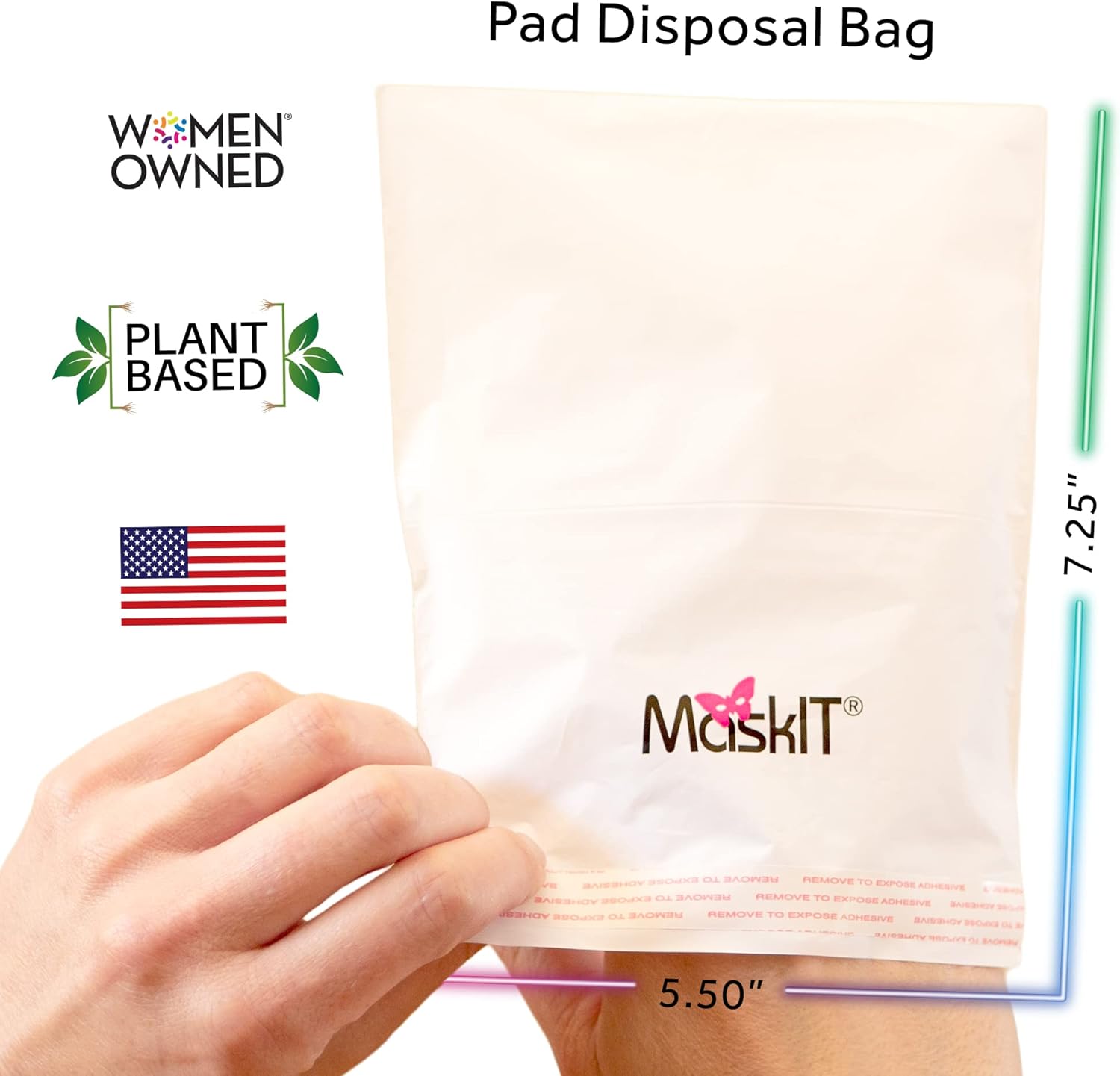 MaskIT Sanitary Napkin Disposal Bags — Plant-Based Disposal Bags for Sanitary Napkins, Period Panties, and Other Menstrual Products — Disposable Pad Pouch for Home & On The Go. — 3 Pack, 54 Count
