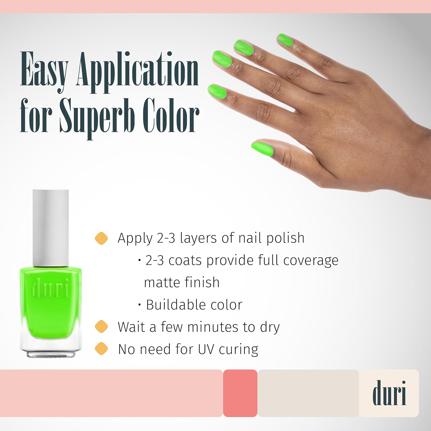 duri 646N NYC Apple Envy, Neon Green Nail Polish, Matte Finish, Quick Drying, 0.45 Fl Oz