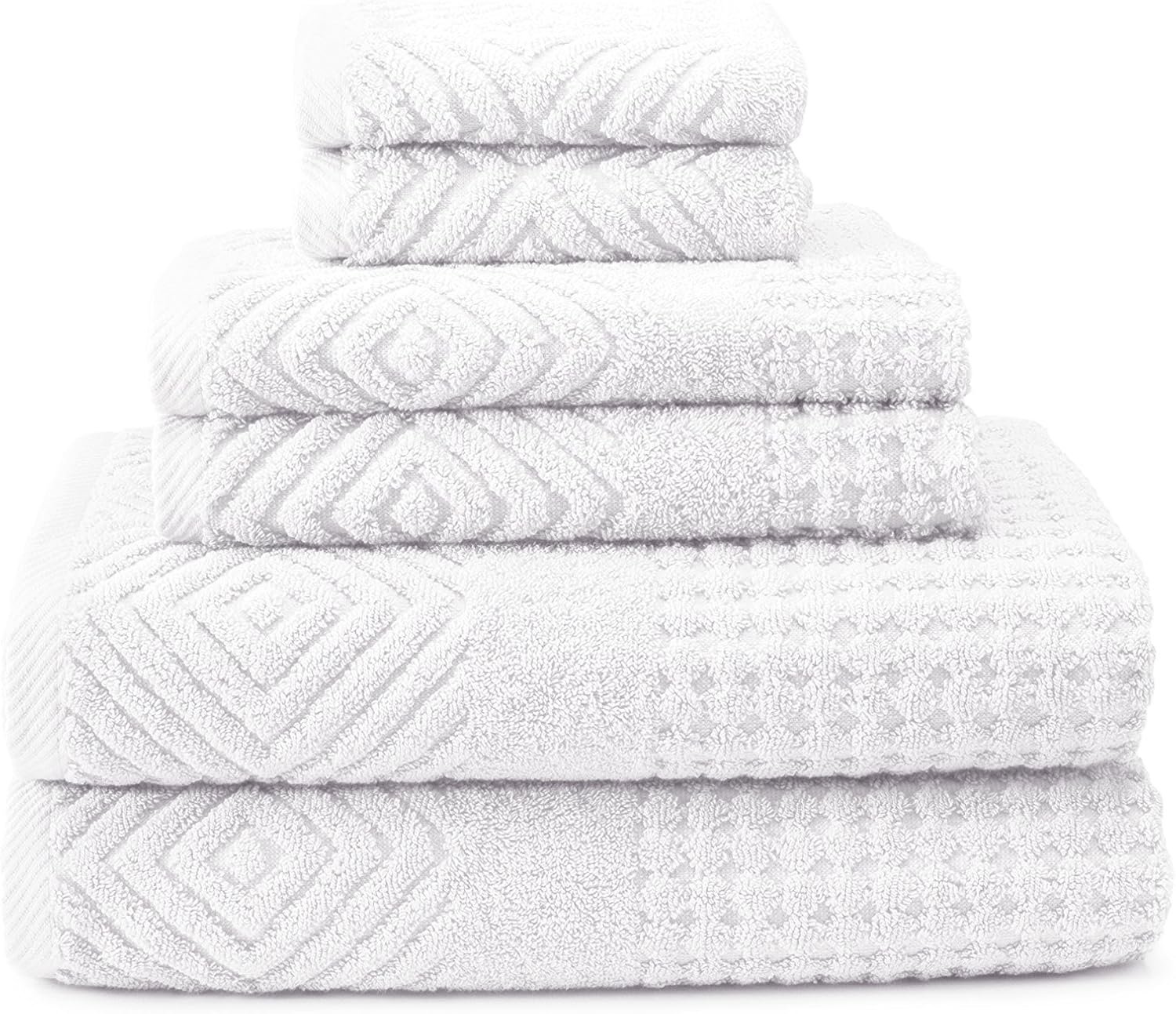 Texere 100% Organic Cotton Diamond Jacquard 700 GSM Luxury Bath Towel Sets, Soft and Absorbent Hotel Quality, Bath Towels, Hand Towels, Washcloths (Diamond, Bright White, 6 Piece)