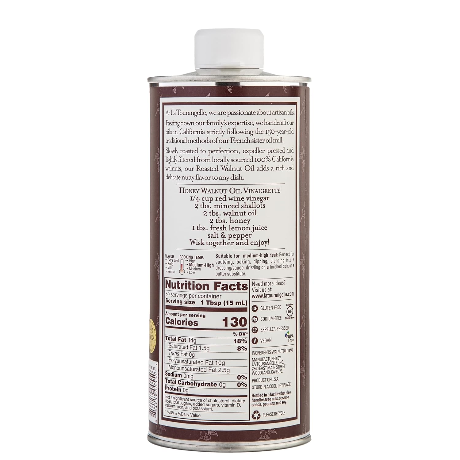 - Gourmet and Sustainable: La Tourangelle's natural artisan oils provide the perfect touch to make a delicious breakfast, lunch, or dinner. We are passionate about making high-quality ingredients that are good for the table, community, and planet. Through artisan production methods and nature-friendly tin packaging, we want to empower people to cook like they care.