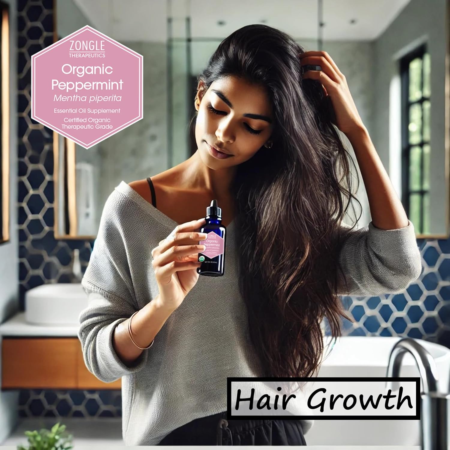 Organic, Peppermint Oil, Food Grade, Edible, for Digestion, IBS, Hair – 100% Pure, Peppermint Essential Oil, Mint Oil, Safe for Ingestion, by Zongle Therapeutics, 1 OZ