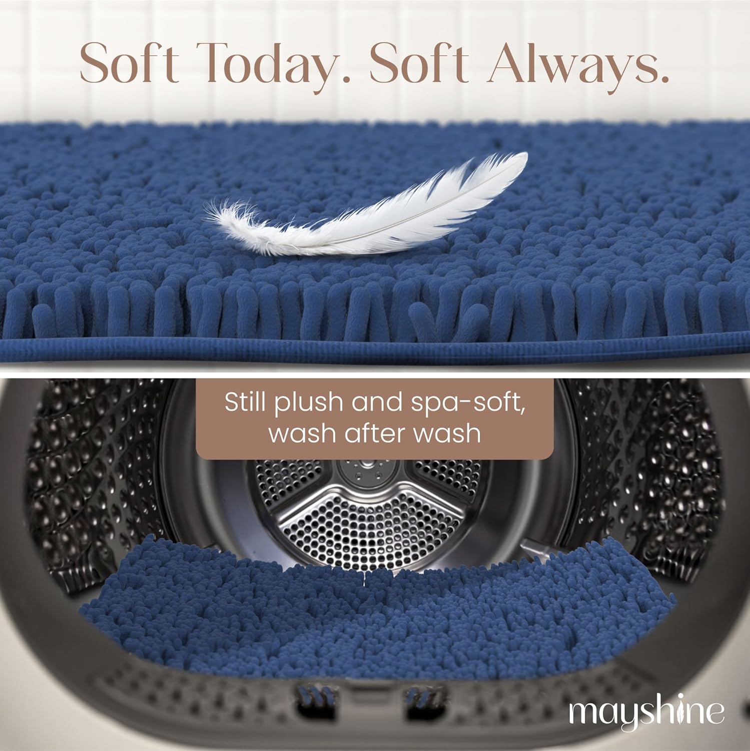 MAYSHINE Plush Shaggy Chenille Bath Mat | Extra Soft, Super Absorbent, Non-Slip Bathroom Rug | Fluffy Microfiber, Area Rug Sets for Bathroom Floor, Kitchen, Living Room | 47"x27" | Dark Blue