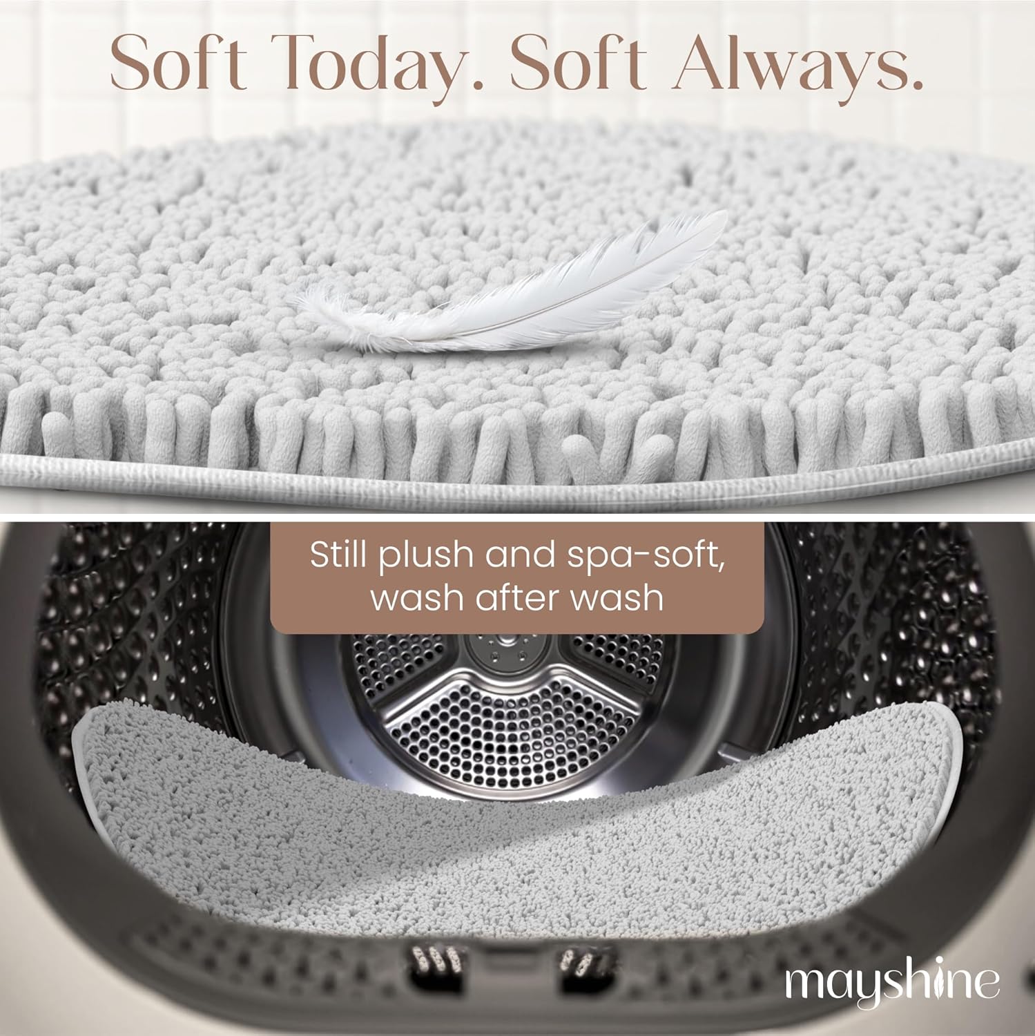 MAYSHINE Round Area Rug Set for Bathroom | Soft Plush Chenille Bath Mat, Water Absorbent Non-Slip Bathroom Rug | Washable Shag Carpet for Shower, Bedroom, or Home Décor | 36"x36" (Round) | White