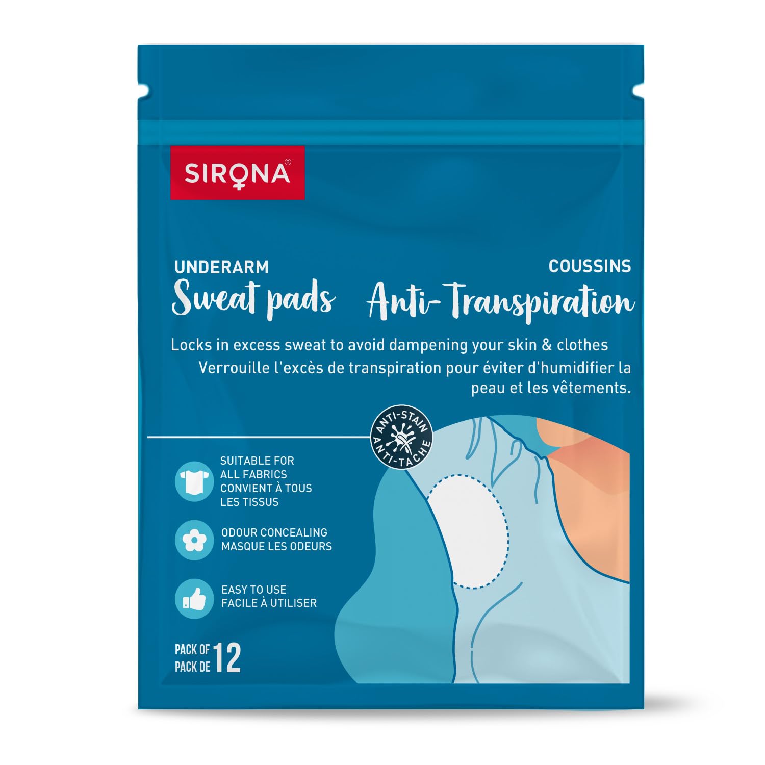 Sirona Under Arm Sweat pads - 12 pads