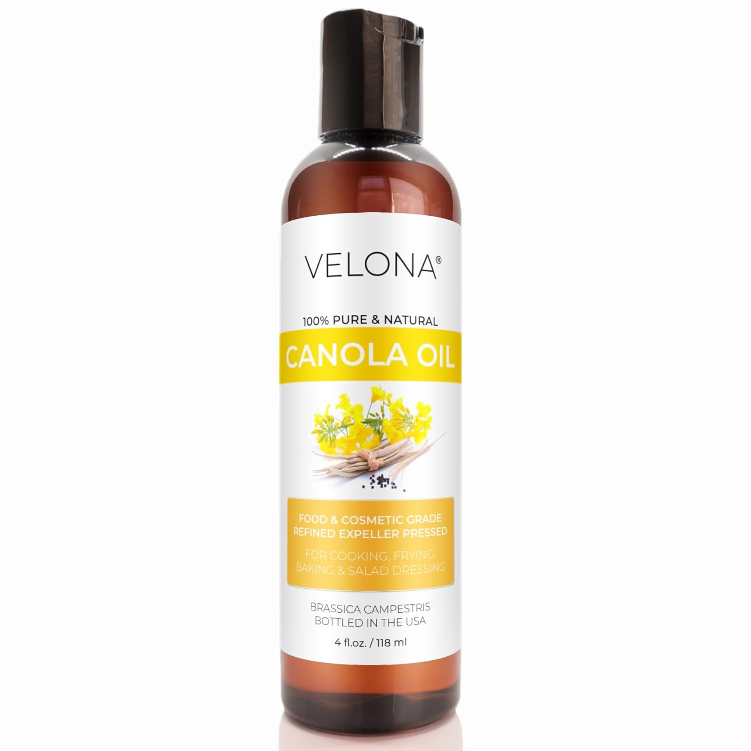 velona Canola Seed Oil 4 fl oz | 100% Pure and Natural Carrier Oil | Refined, Expeller pressed | Cooking, Dressing, Skin, Face, Body, Hair Care | Use Today - Enjoy Results