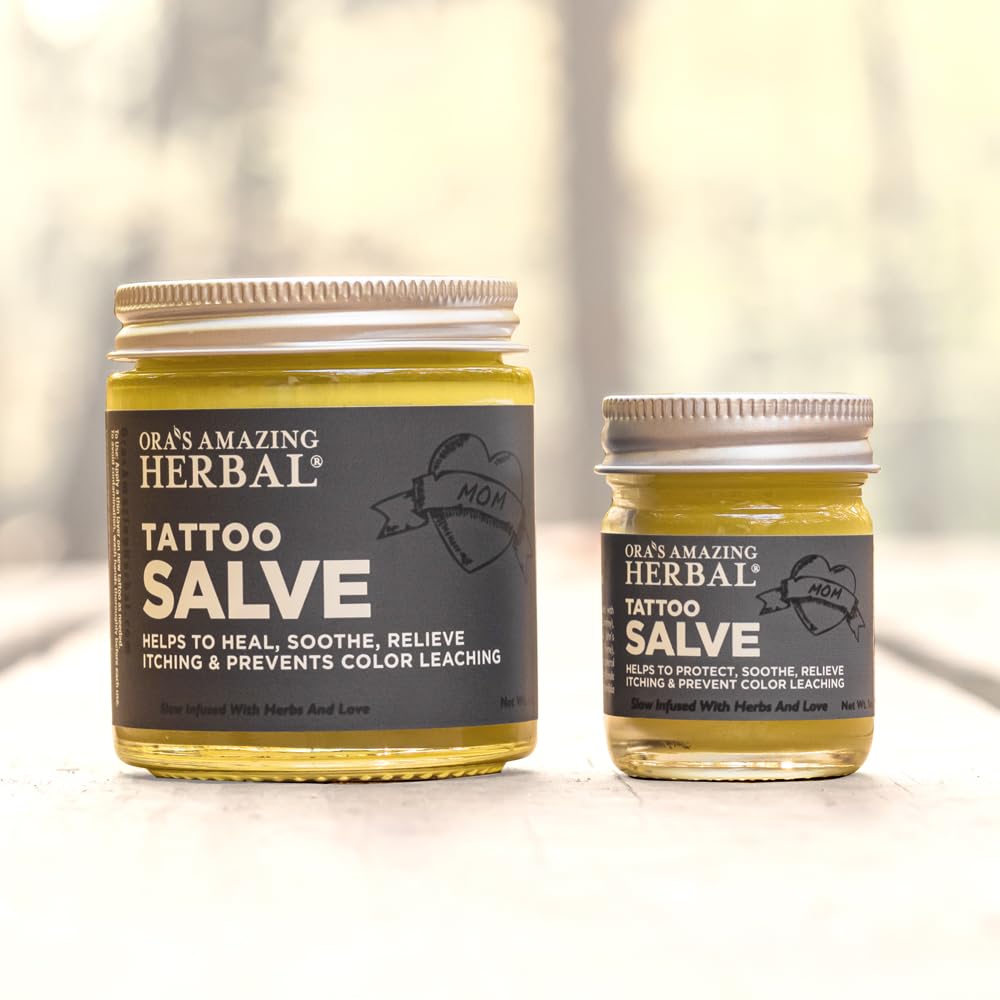 Ora's Amazing Herbal, Tattoo Salve, Tattoo Aftercare Balm| Color Enhancement for Old Ink | Itchy Relief Cream Ointment for New Tattoo| Paraben Free, Plastic Free| | Faster Healing | 1 and 4 oz set