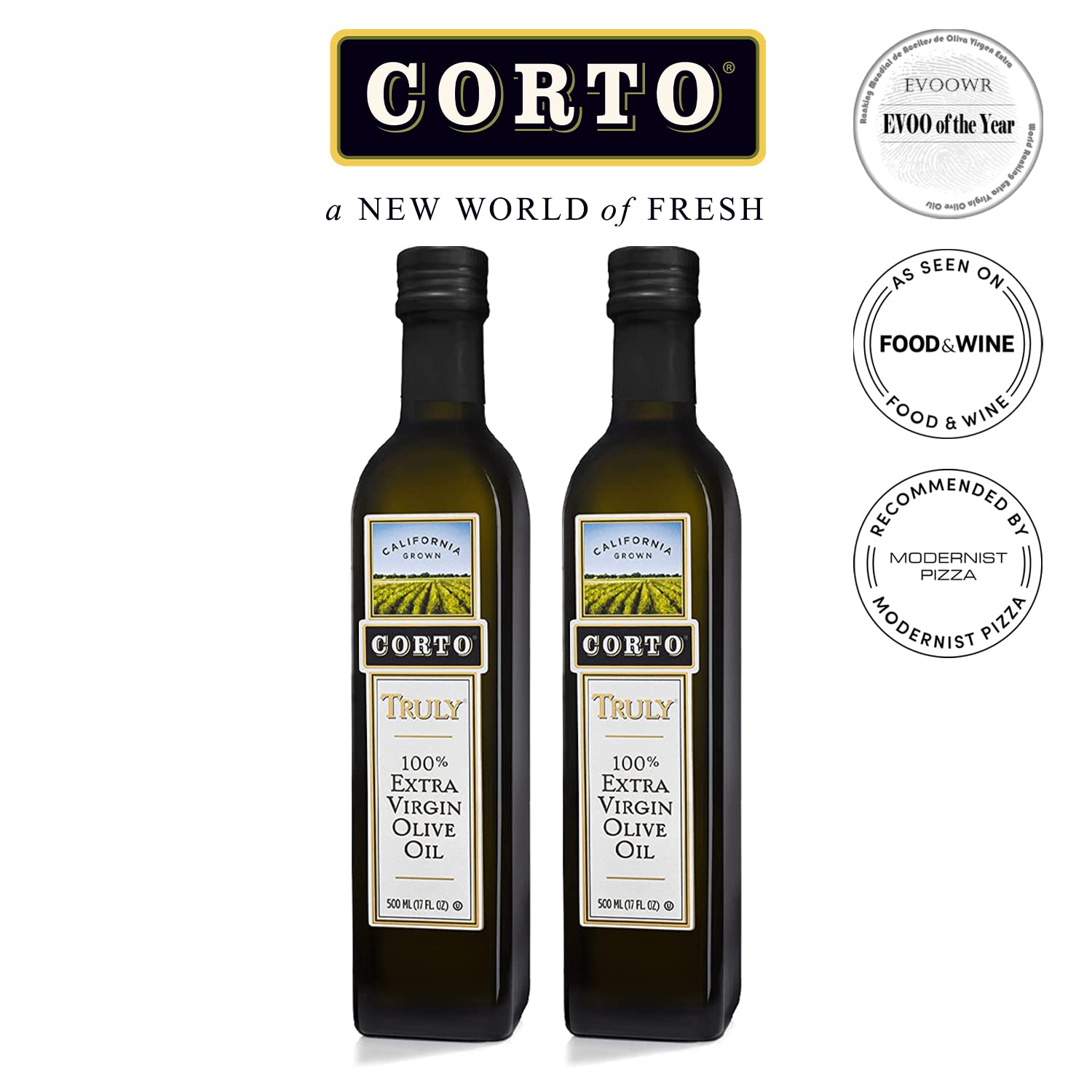 Corto TRULY® | 100% Extra Virgin Olive Oil | Floral Notes | Cold Extracted in State-of-the-Art Mill | Straight from Official Corto Olive Groves & Oil Producer (Truly 500ml Twin)