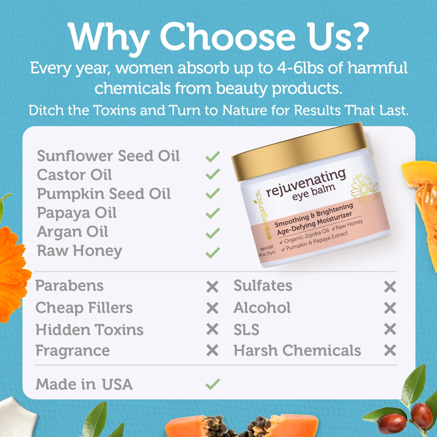 USDA Organic Eye Moisturizer Cream - Rejuvenating and Nourishing Age Defying Balm - Natural Ingredients for Sensitive Skin with Jojoba Oil, Argan Oil for Puffiness, Fine Lines Plus More