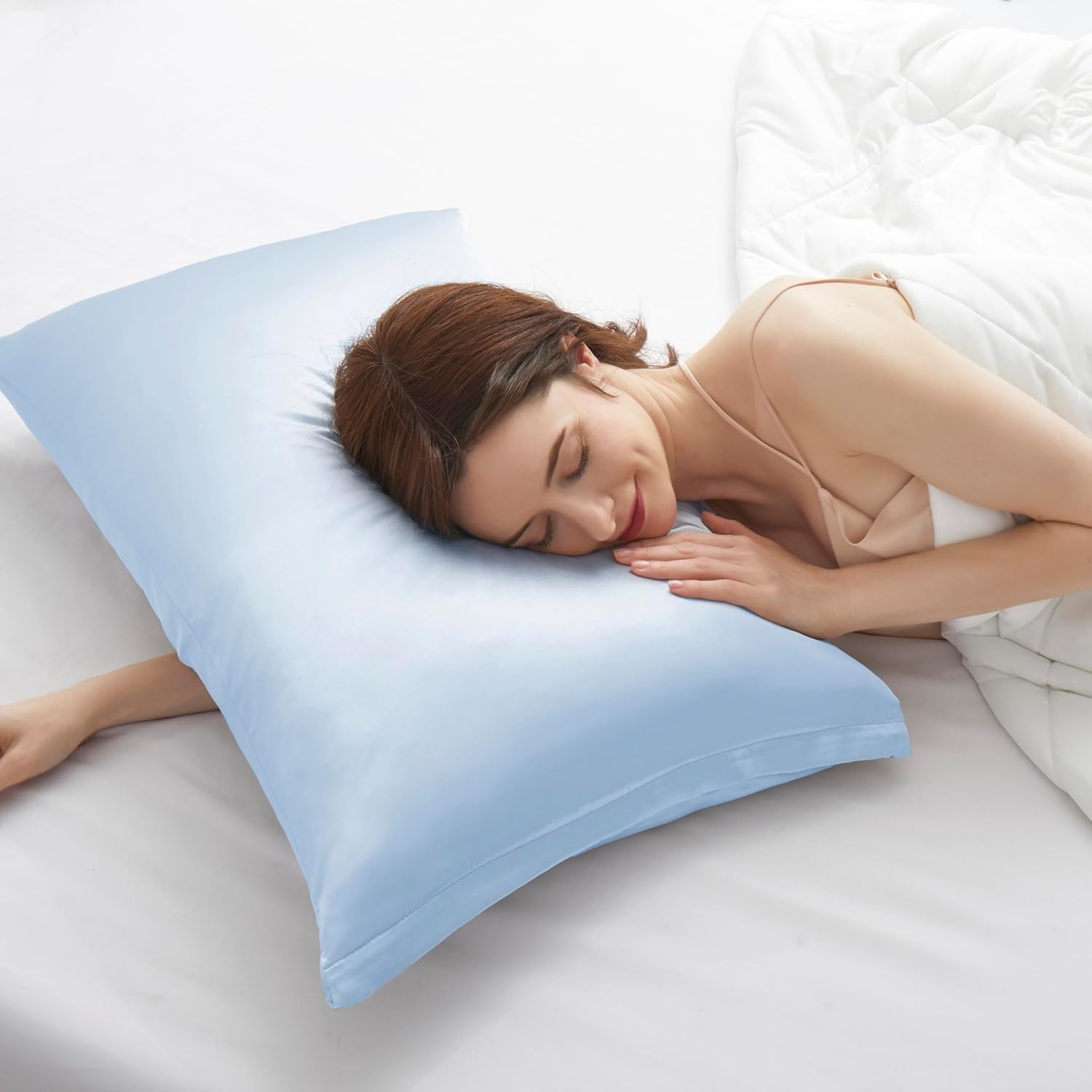 Juwenin Bedding,Luxury Satin Pillowcase with Zipper (Silky Satin Pillow Case for Hair) Set of 2 (Blue, Queen(20''x29''))